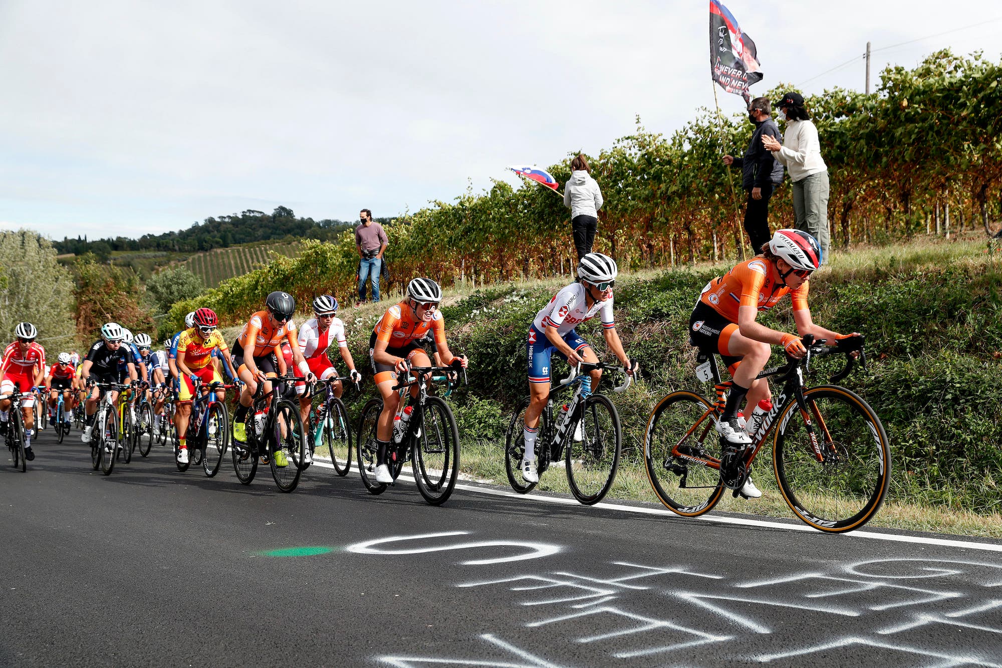 Women’s elite road race: Lotte Kopecky (Belgium), Marlen Reusser (Switzerland), Coryn Rivera (USA), Elisa Longo Borghini (Italy), Katarzyna Niewiadoma (Poland), Ashleigh Moolman Pasio (South Africa), and the whole Dutch team (particularly: Annemiek van Vleuten, Anna van der Breggen, Marianne Vos, Demi Vollering, and newly crowned European champ Ellen van Dijk).