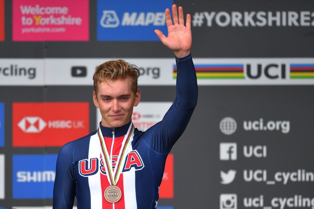 A product of the U.S. development system and a key wingman of Quinn Simmons in his ride to the rainbow jersey at the Yorkshire worlds, Sheffield will step into the WorldTour in 2022 at just 19 years old. It’s a story made all the more spectacular by the fact that he has seen a threadbare race schedule for the past two years.