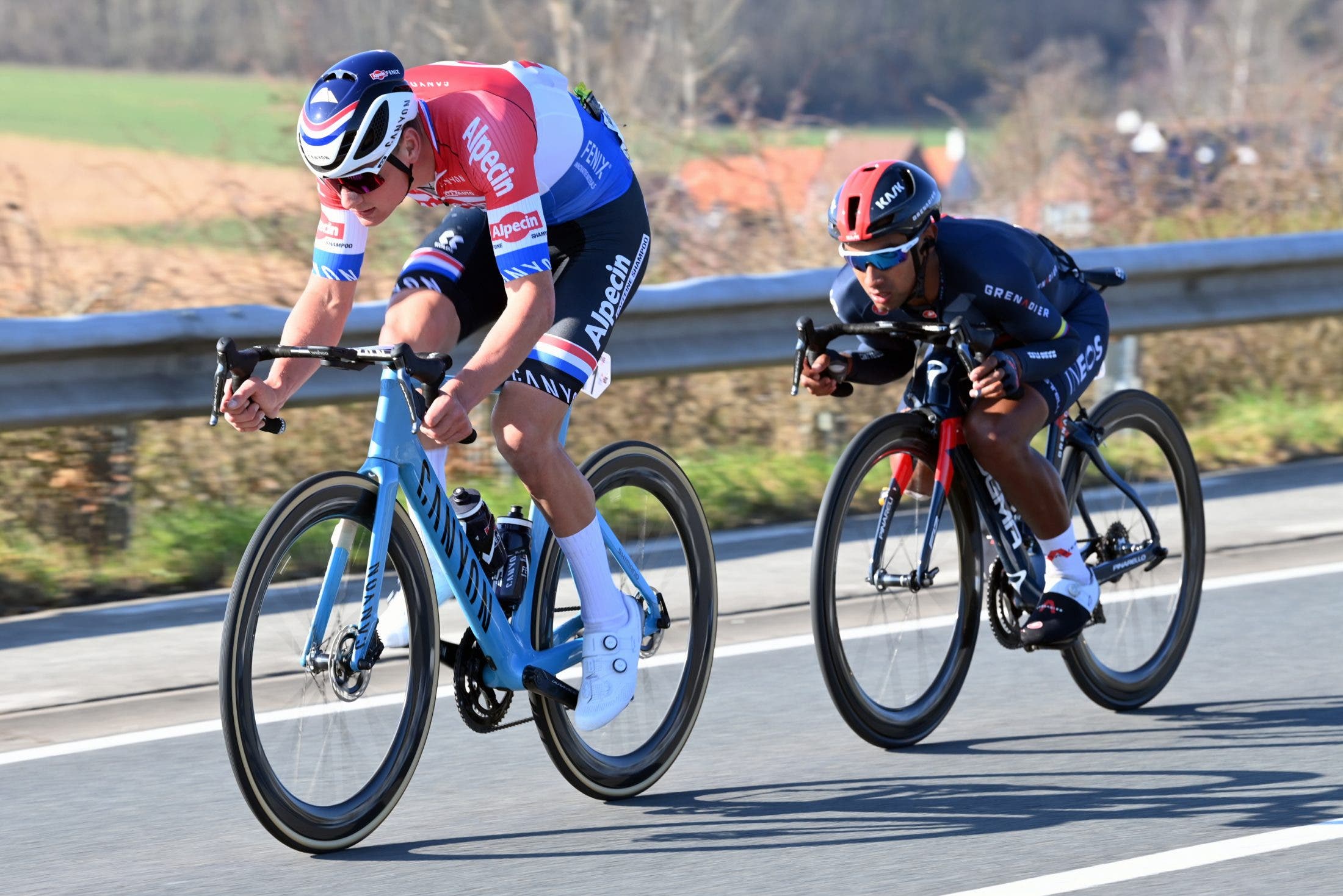Mathieu Van Der Poel (Alpecin-Fenix) drives the pace during the 73rd Kuurne-Bruxelles-Kuurne 2021 on Sunday. (Photo by Peter De Voecht - Pool/Getty Images)