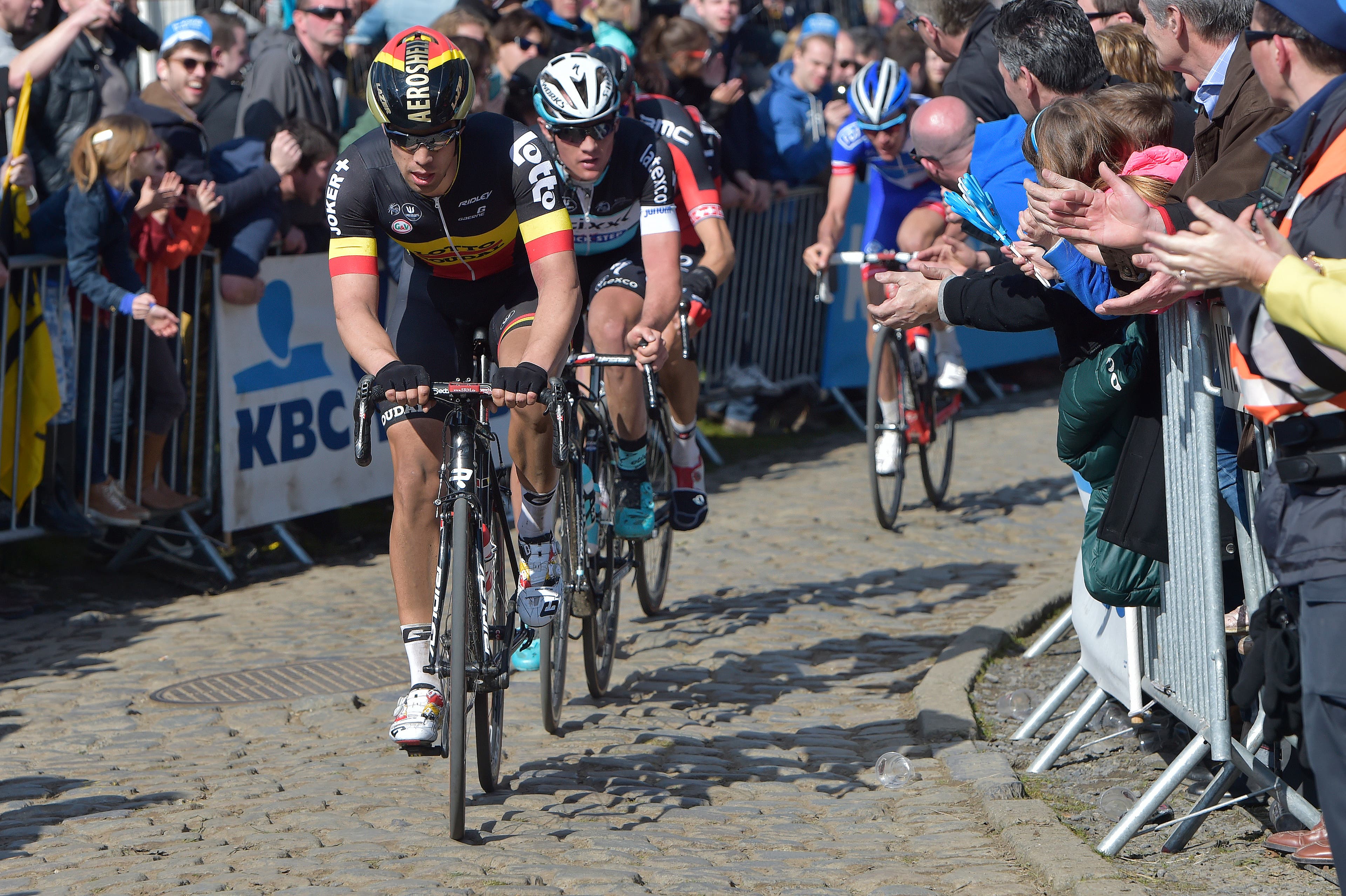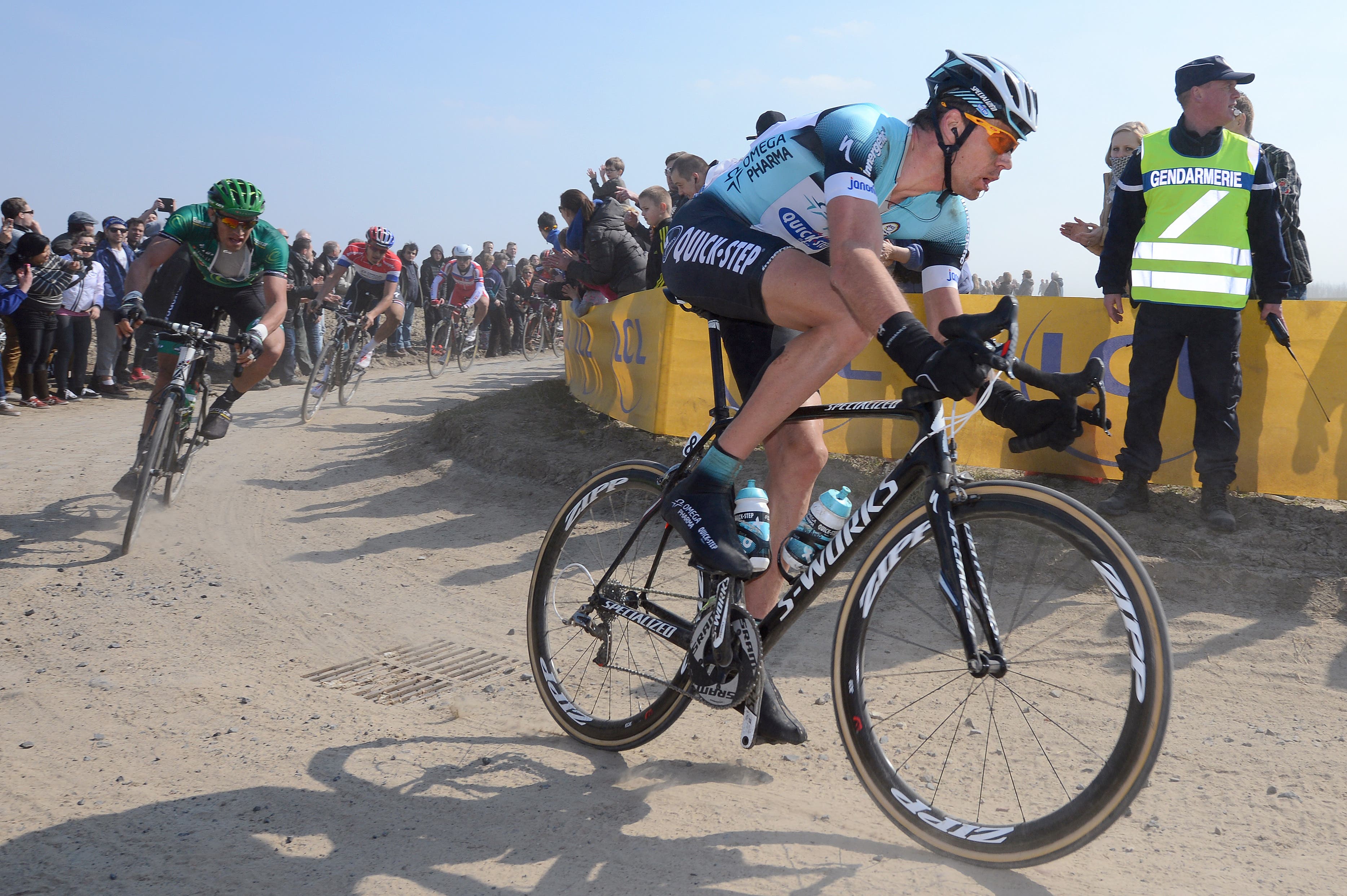 So, when Debusschere rode into the front group at Paris-Roubaix, he knew he was on a fine day. His moment came when British rider Bradley Wiggins attacked to set up his teammate Luke Rowe. Debusschere followed alongside Stijn Vandenbergh, and briefly found himself riding off the front.