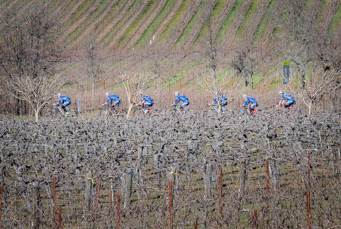 Soon enough it was time to hit the road with a three-hour training ride around Lake Berryessa. Rolling down the sinuous road out of the Clif family farm, the riders chatted easily once they hit Pope Valley Road. And there was an undeniable Mediterranean feel as this elite cycling team cruised past numerous vineyards and orchards that define this area, warmed by the winter’s sun.