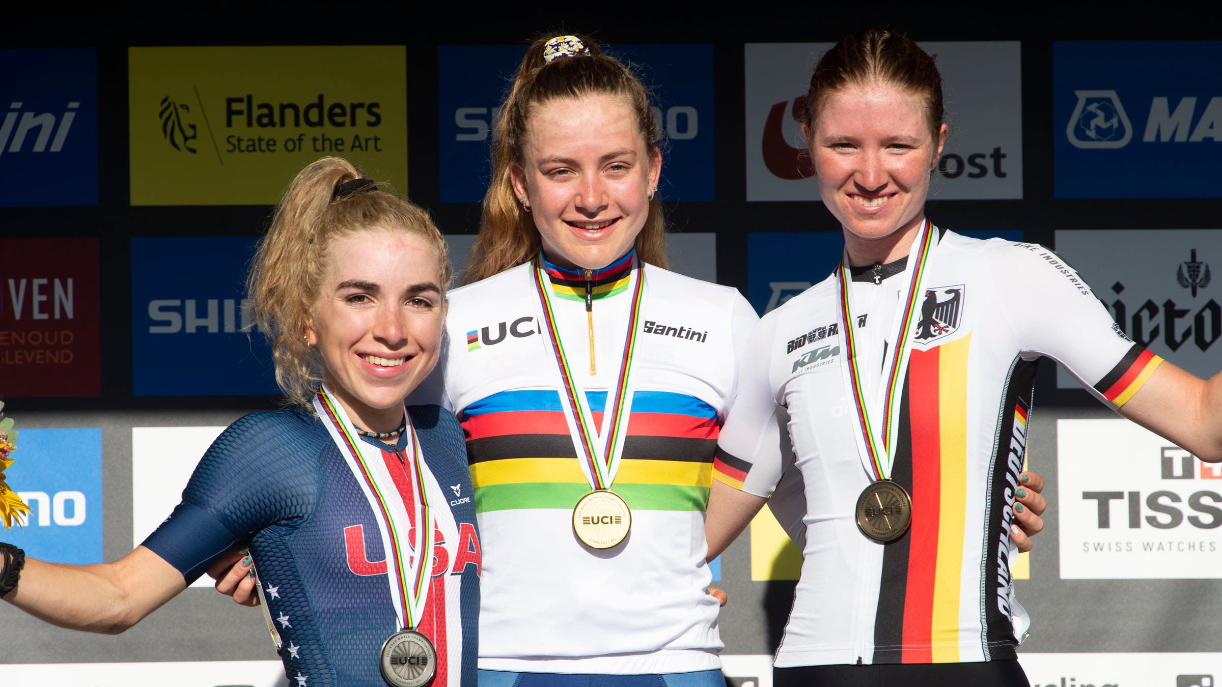 “It was awesome to have two of us in the top five. Obviously we wanted to come home with the rainbow stripes,” said Schmid. “But any day on a podium at worlds is a good day.”