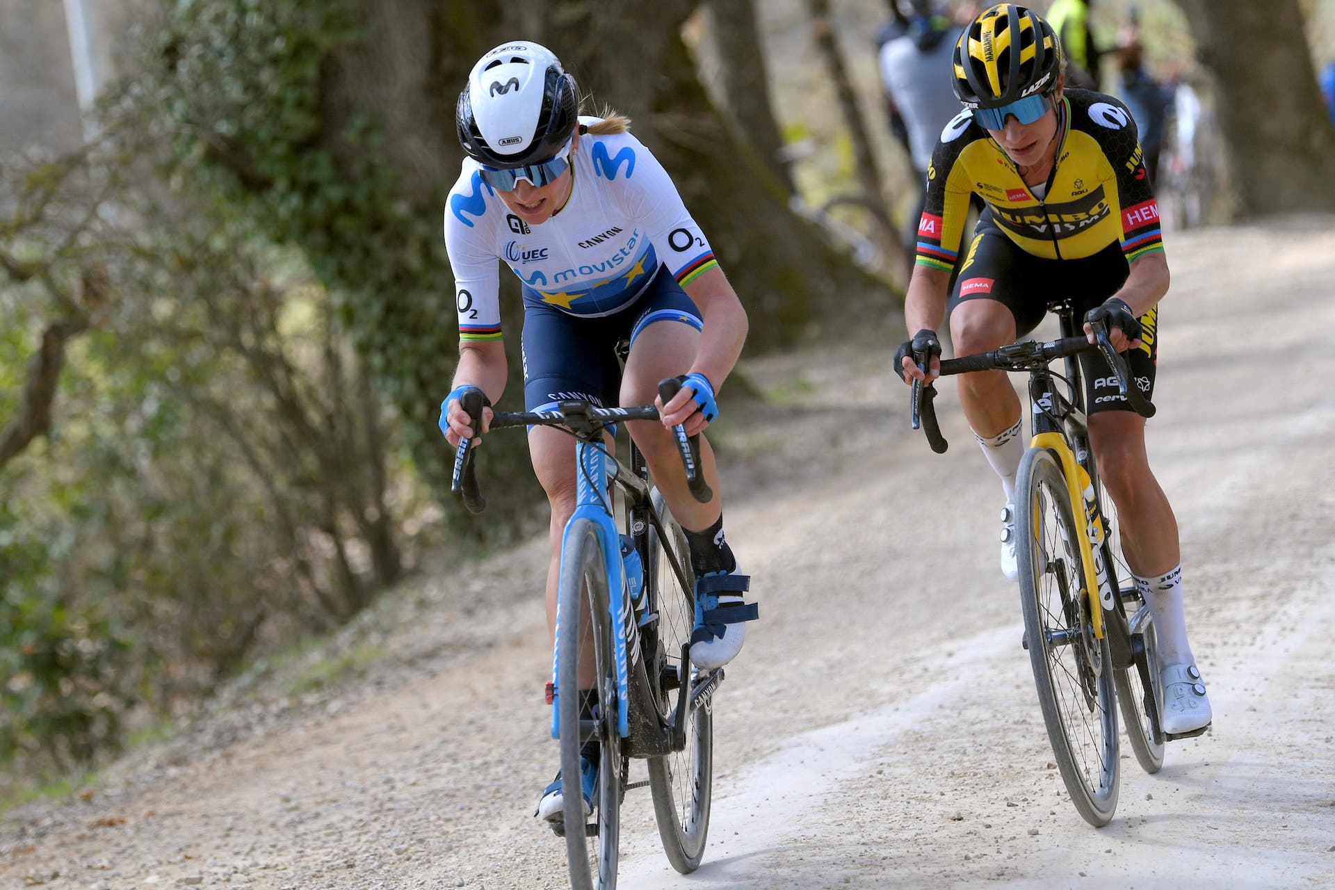 For Gent-Wevelgem women’s race, the SD Worx vs. Trek-Segafredo face-off takes center stage, but there’s much more to the classics than these two. Movistar, Liv Racing, and Ceratizit-WNT all bring riders with form and experience to the cobbles Sunday, and it will be good to see if one of these secondary contender teams can break the stranglehold that the two big players have on the classics so far.