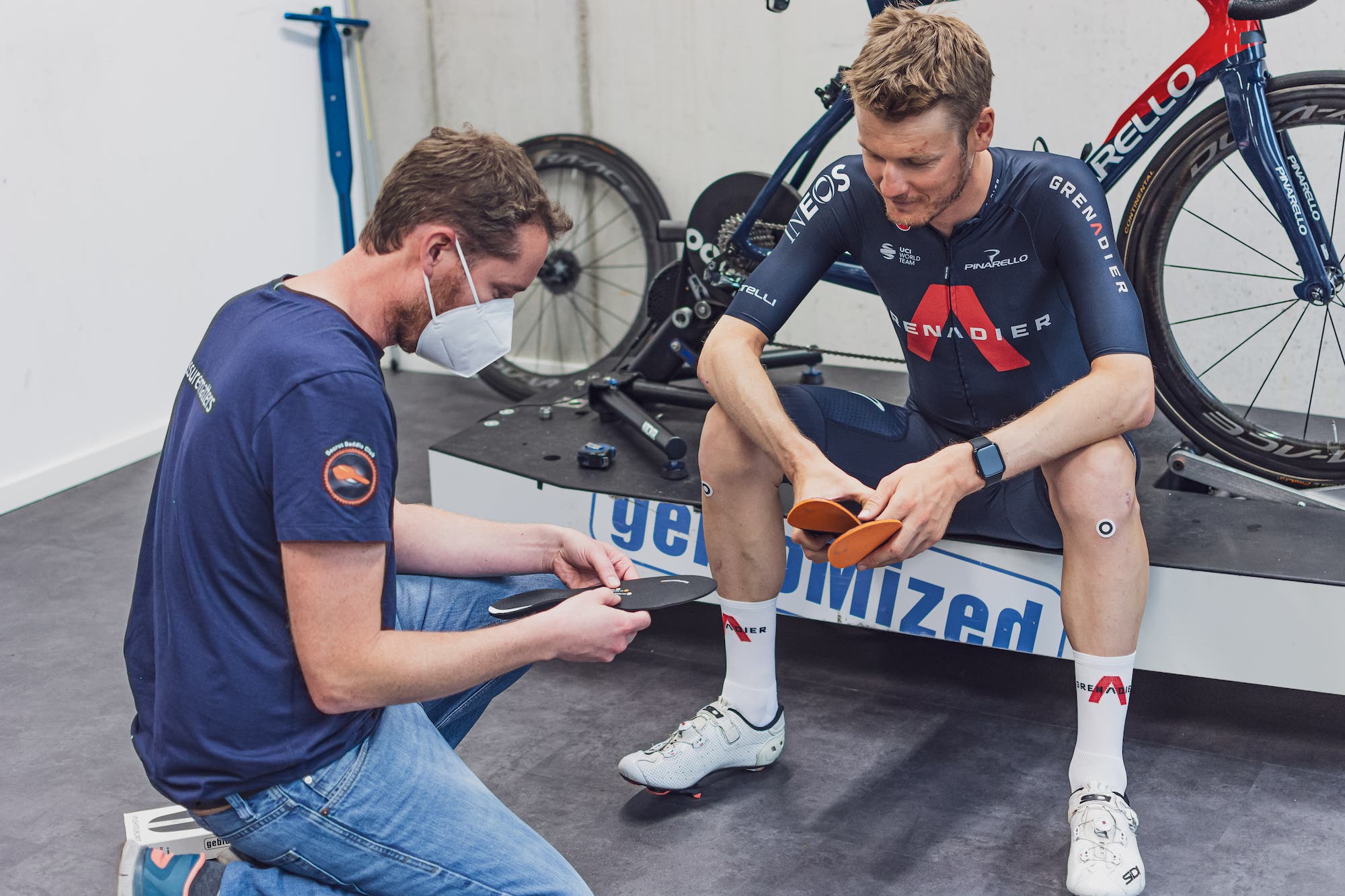 Ineos Grenadiers teammate Dylan van Baarle, world road race silver medalist in 2021, also visited the facilities and put a special focus on shoe-fitting and power transfer.