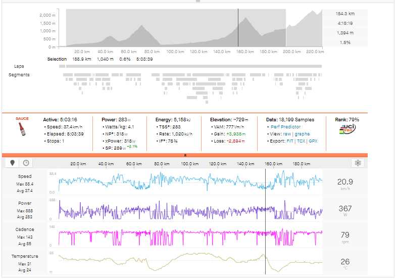 Normalized Power: 318w (4.7w/kg)