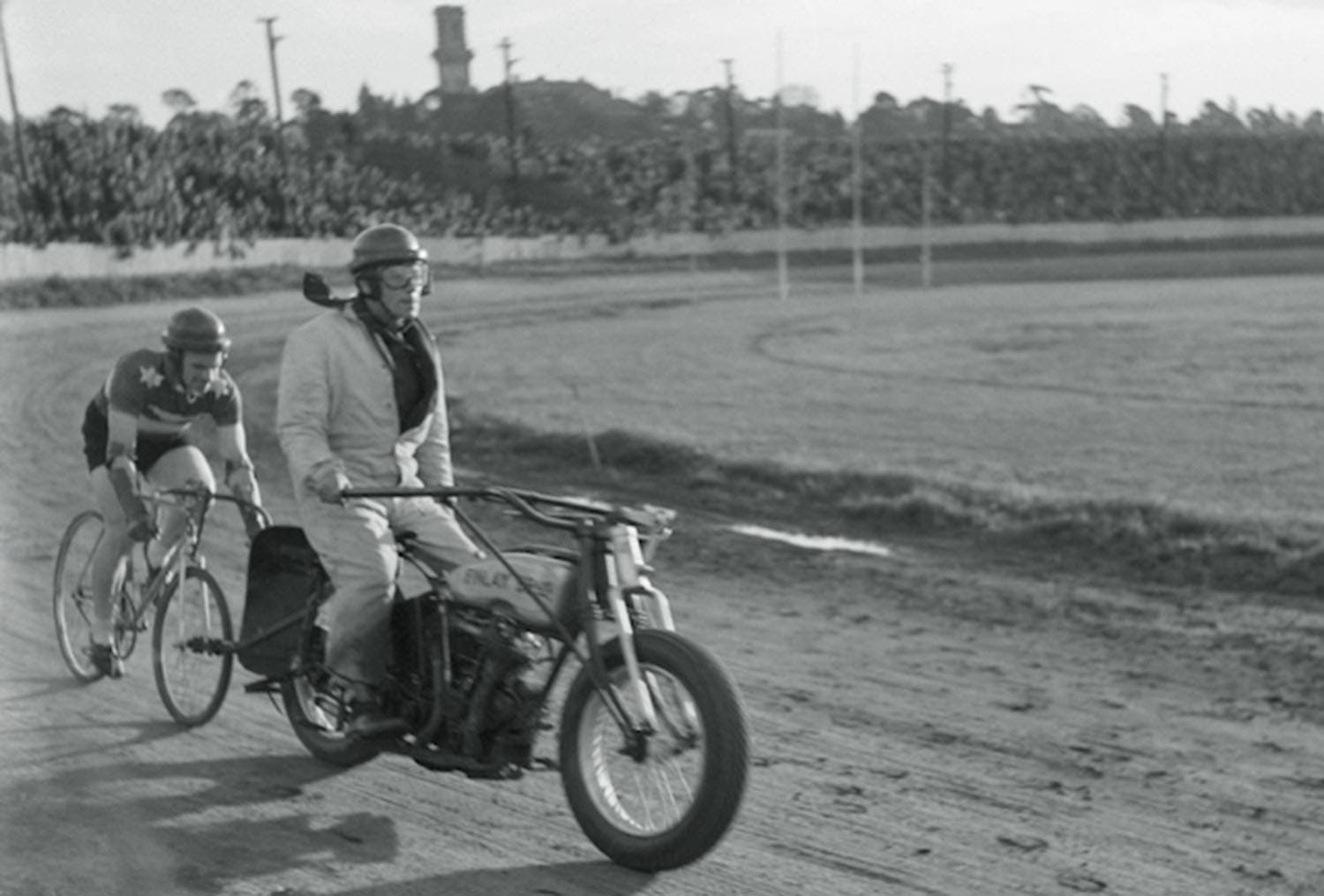 Oppy also mastered the dangerous sport of motor-pacing, in which a cyclist rode around a velodrome in the slipstream of a powerful motorcycle. In 1930, at the Melbourne Motordrome, he broke the world record for riding one 100 miles (161 km), covering the distance in 100 minutes. Two years later he set another motor-pacing world record by riding 1,000 miles (1,609 km) in just under 29 hours.