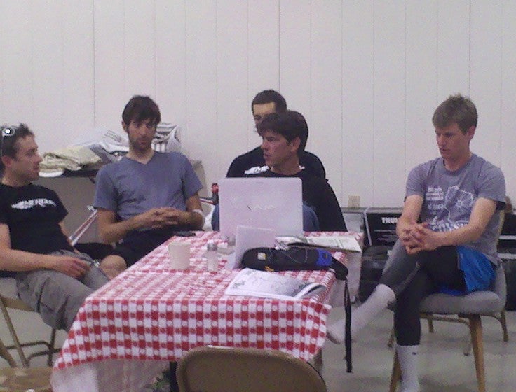 That’s us right now: disaster relief housing. It’s no Katrina, but nine dudes in one room does qualify as a disaster.