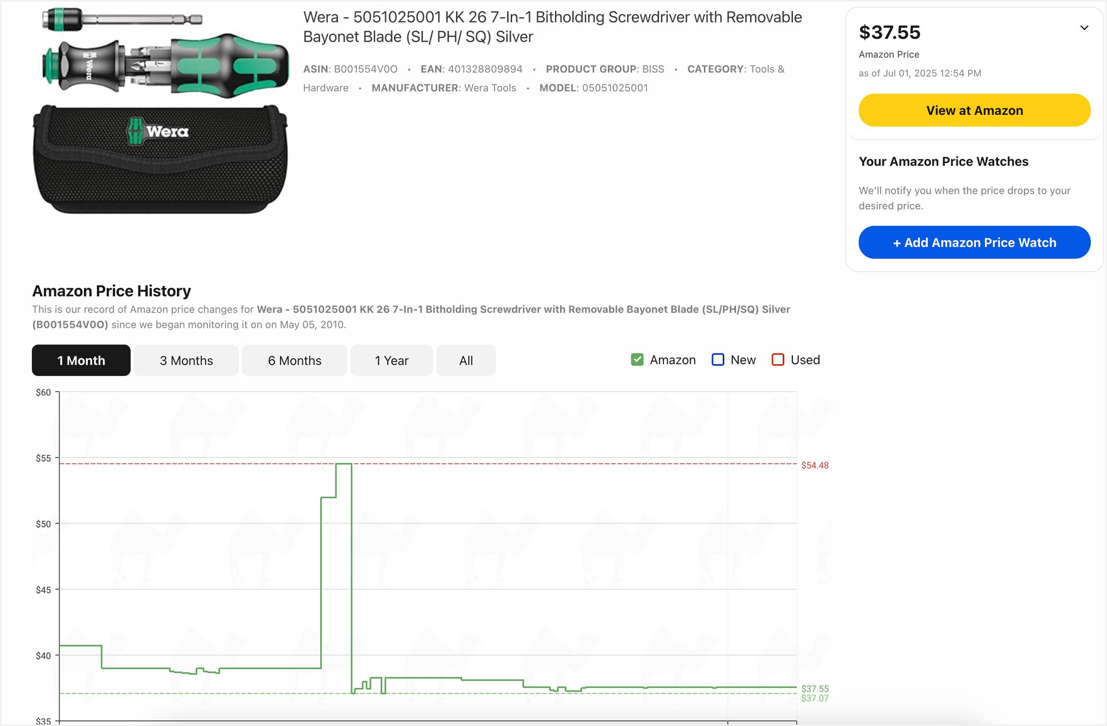 To make sure you know what’s happening you need to be informed. Ideally you’ve been watching the item in question for a while. That’s a good sign you should actually buy it, but if that’s not the case another option is a price history tracker. Two options are CamelCamelCamel or Keepa, both of which offer websites and/or browser extensions that show the price history and what a product normally sells for.