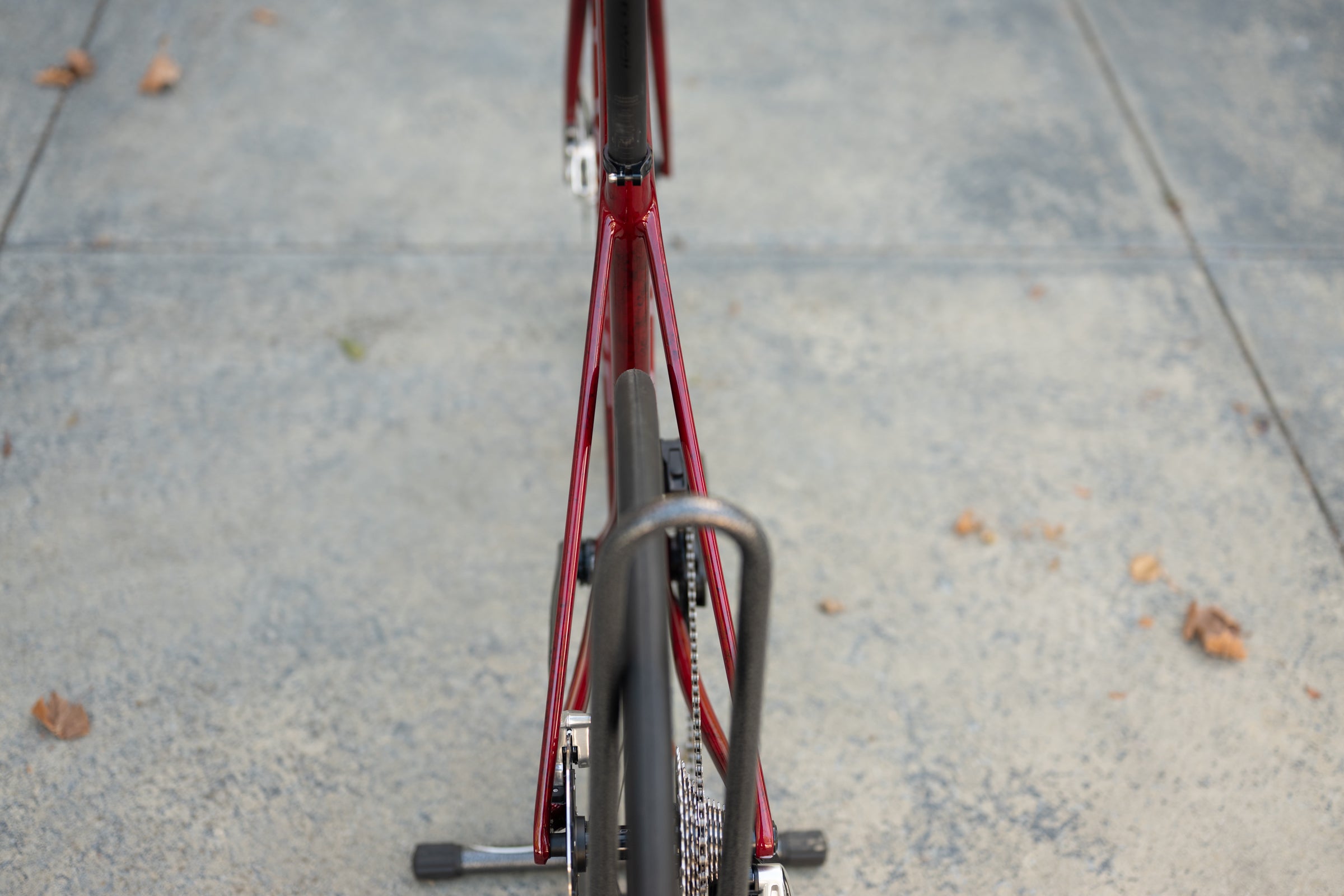 It does track in a straight line noticeably better though. After too many winters on rollers I sometimes like to ride directly on the white line at the edge of the road. The last version of the bike made that difficult. This time the little extra wheelbase helps a lot.