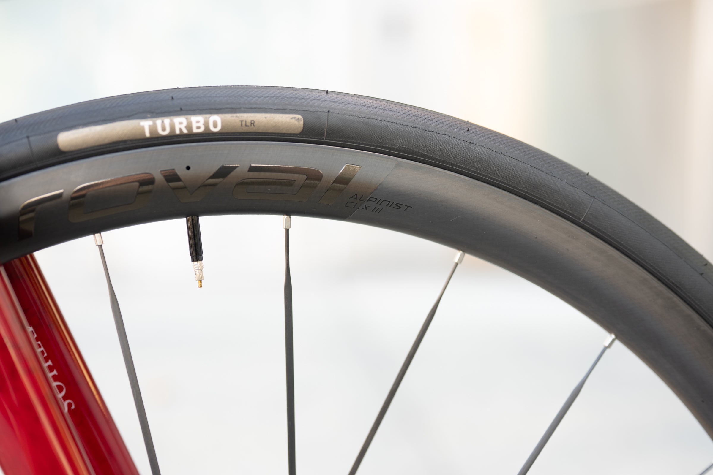 Front wheel | Roval Alpinist CL II, 21mm internal width carbon rim, 33mm depth, Win Tunnel Engineered, DT for Roval 350 hub, DT Swiss Aerolite spokes, Tubeless Ready |