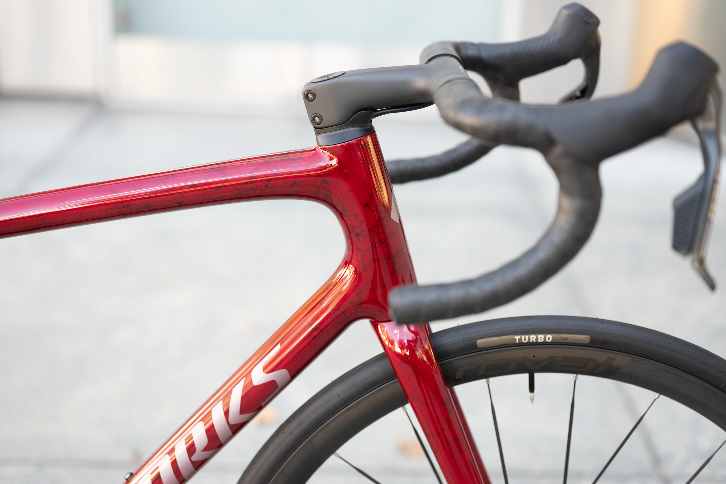 This is the same system you’ll find on the Tarmac. It could mean it’s a little easier to pack into a travel case and it might also mean it’s easier to swap handlebars. Specialized says it’s possible to use any standard bar and stem combo using a 1 1/8” steerer clamp and, in case you are curious, the same is true of the seatpost which is a standard round 27.2 design.