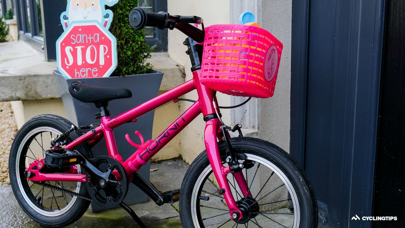 Those trips to the bike shop have expedited her step up to the pedal bike. While this Hornit Hero isn’t quite the pink my daughter would ideally like and doesn’t yet have a baby seat (Santa is on the job, though), Daddy likes its well-thought-out design, functional brakes, belt-driven drivetrain, and relatively low weight (5.4 kg, size 14″, with pedals).