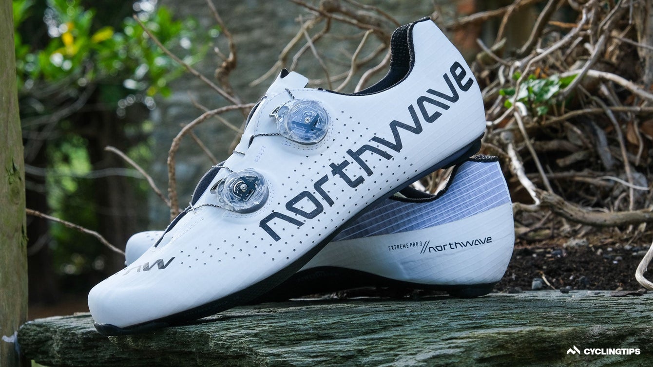 The sole is apparently rated 15 in terms of stiffness, while the “Powershape” arch support carried over from the Extreme Pro does support my mid-height arches. The shoes are not perfect, Northwave’s closure dials get sticky and are awkward to release or tighten beneath overshoes, and the white finish has proved impossible to keep clean, even long before their first wet ride.