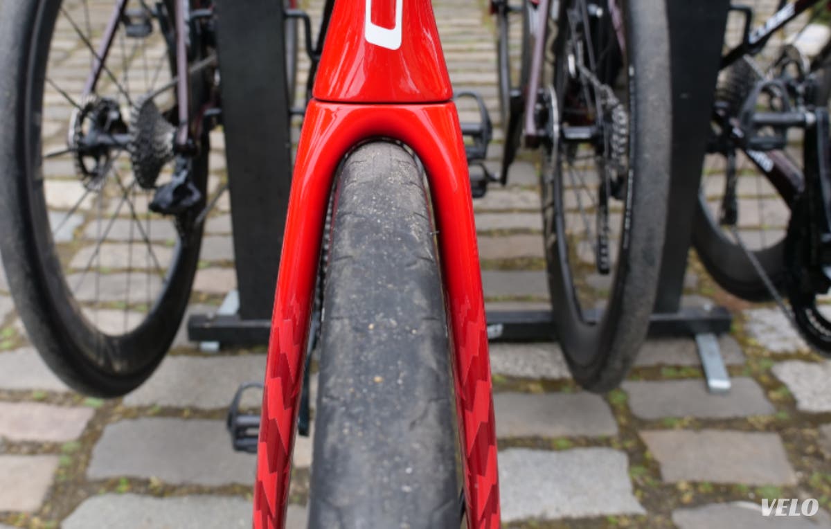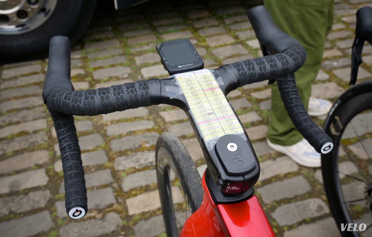 Below is part one of our Paris-Roubaix tech gallery. We have details on the teams opting for a 35mm wide tyre, Josh Tarling’s massive 62t chainring, and one of the cutest top tube cue sheets we’ve ever seen.
