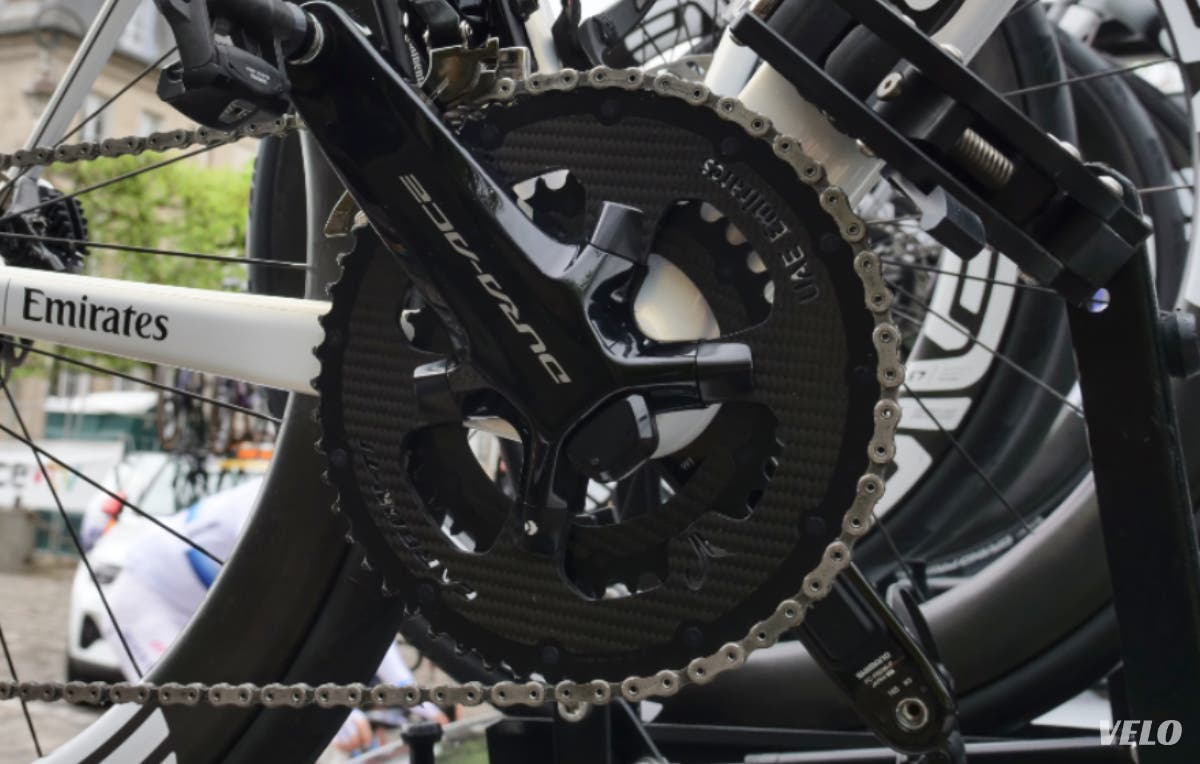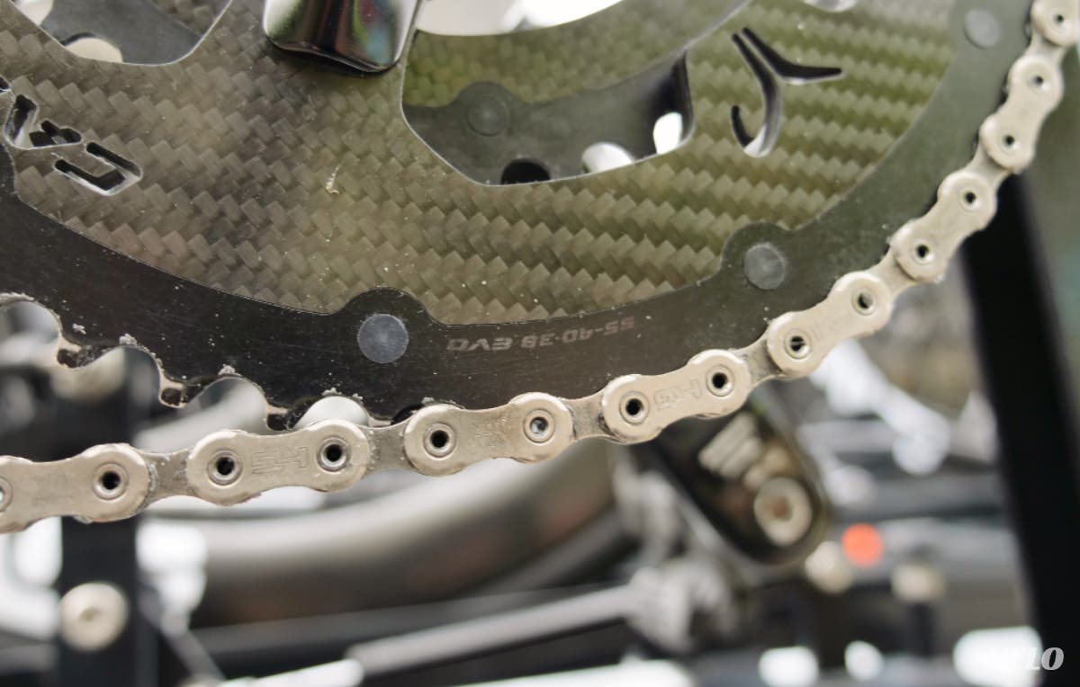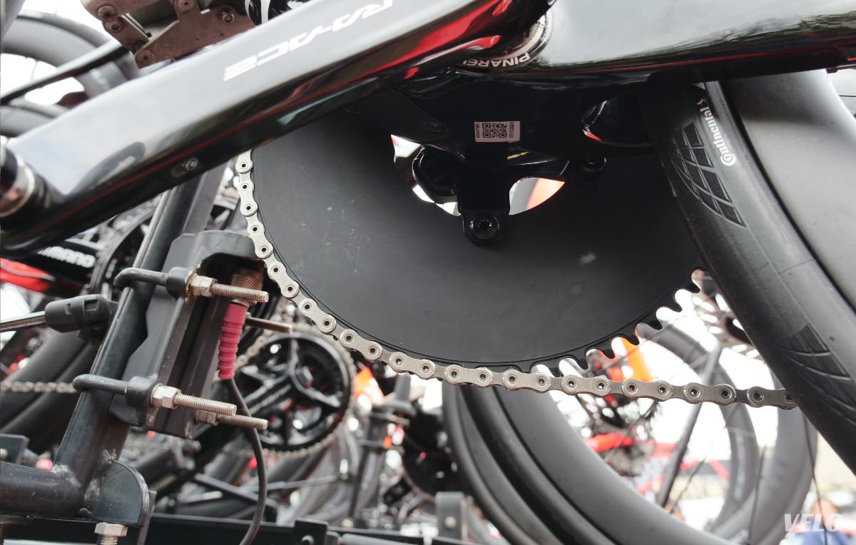 35mm tires were on show at Bahrain in the form of Continental Grand Prix 5000 All Season TR. The team had a mixed bag of chainrings in many sizes there was of course the standard Shimano chainrings but in sizes not available to use mere mortals, but also chainrings from CarbonTi and Digirit. The largest was on Kamil Gradek’s bike with a 56/44 setup.