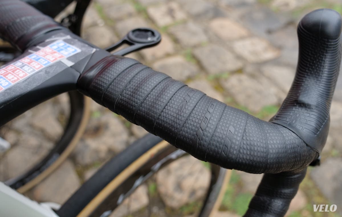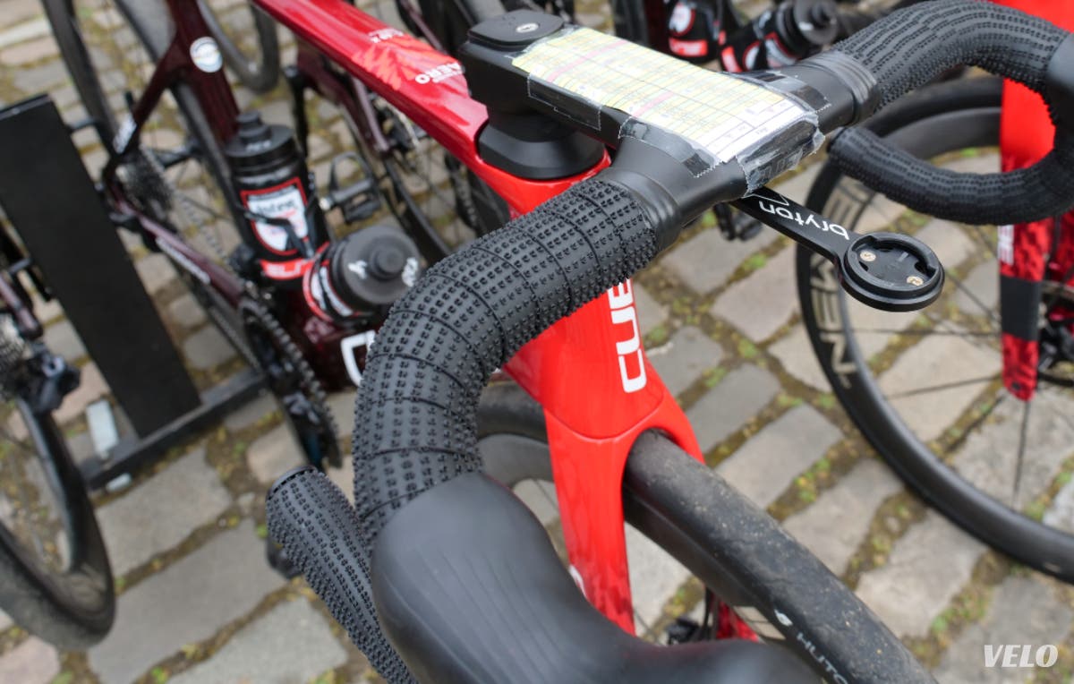 Oddly, in this day and age, we don’t see much double-wrapped tape, but we did at Cofidis. One rider’s bar and stem setup stood out with its double taped bars.