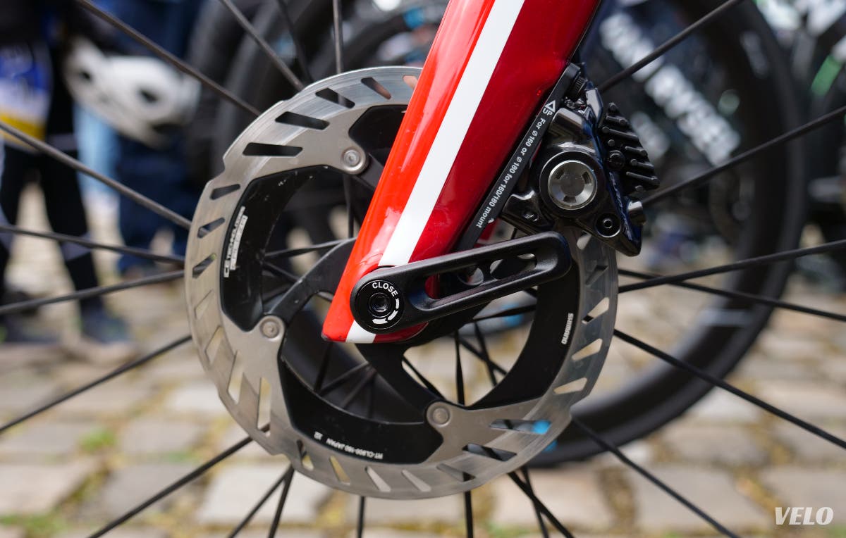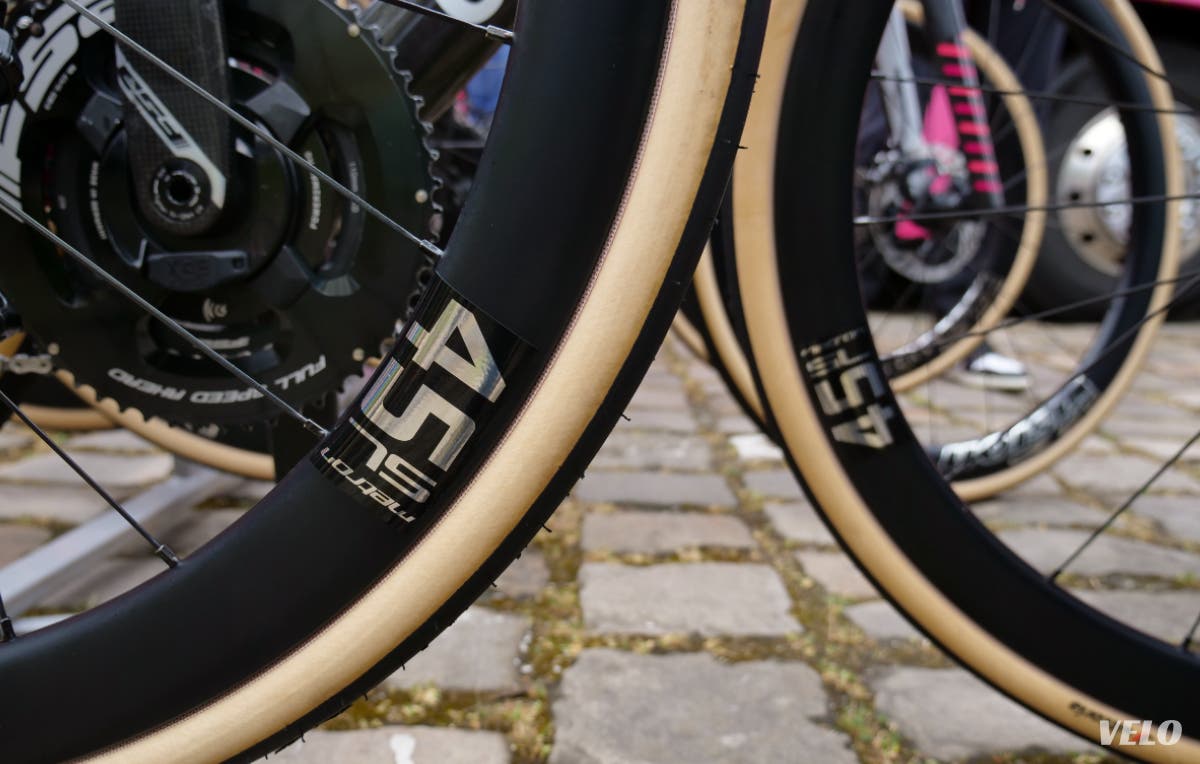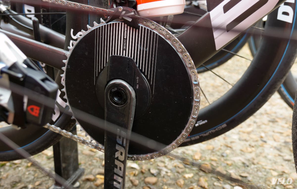 And since the team is sponsored by SRAM, running a 1x drivetrain was an easy choice for the relatively flat Paris-Roubaix. Every rider used either a 56- or 54-tooth chainring up front, matched to a 10-33t cassette at the back.