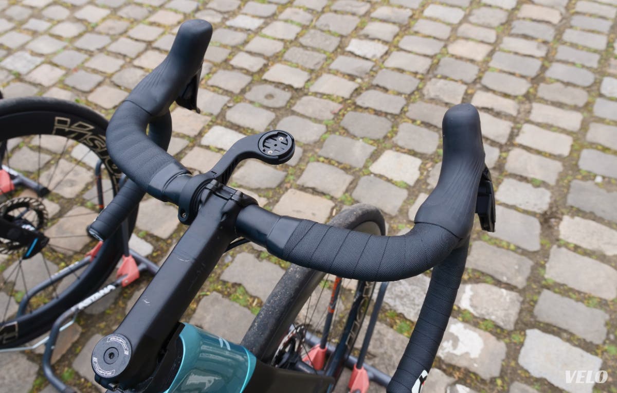 All in all, there’s no change for the team on the mechanical side of things apart from Cees Bol with an unbranded FSA alloy stem that is ridiculously long. He’s matched that to a standard FSA bar in 36 cm width.