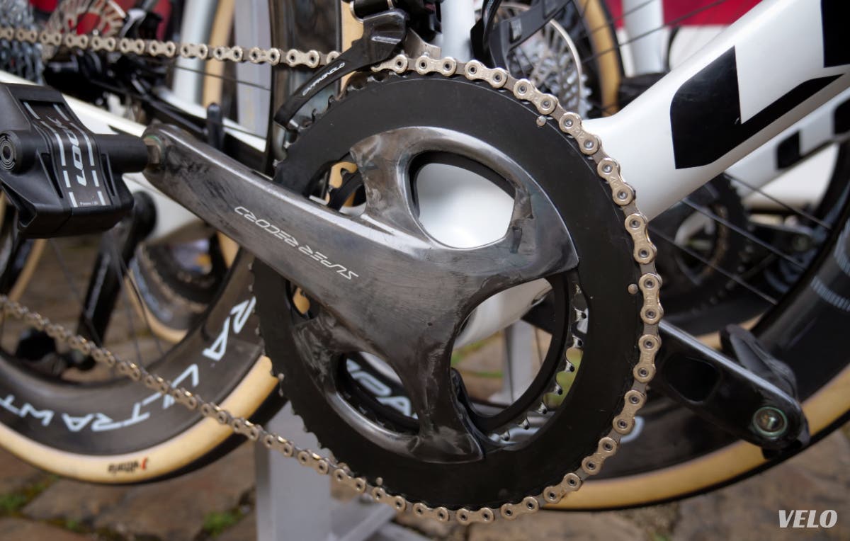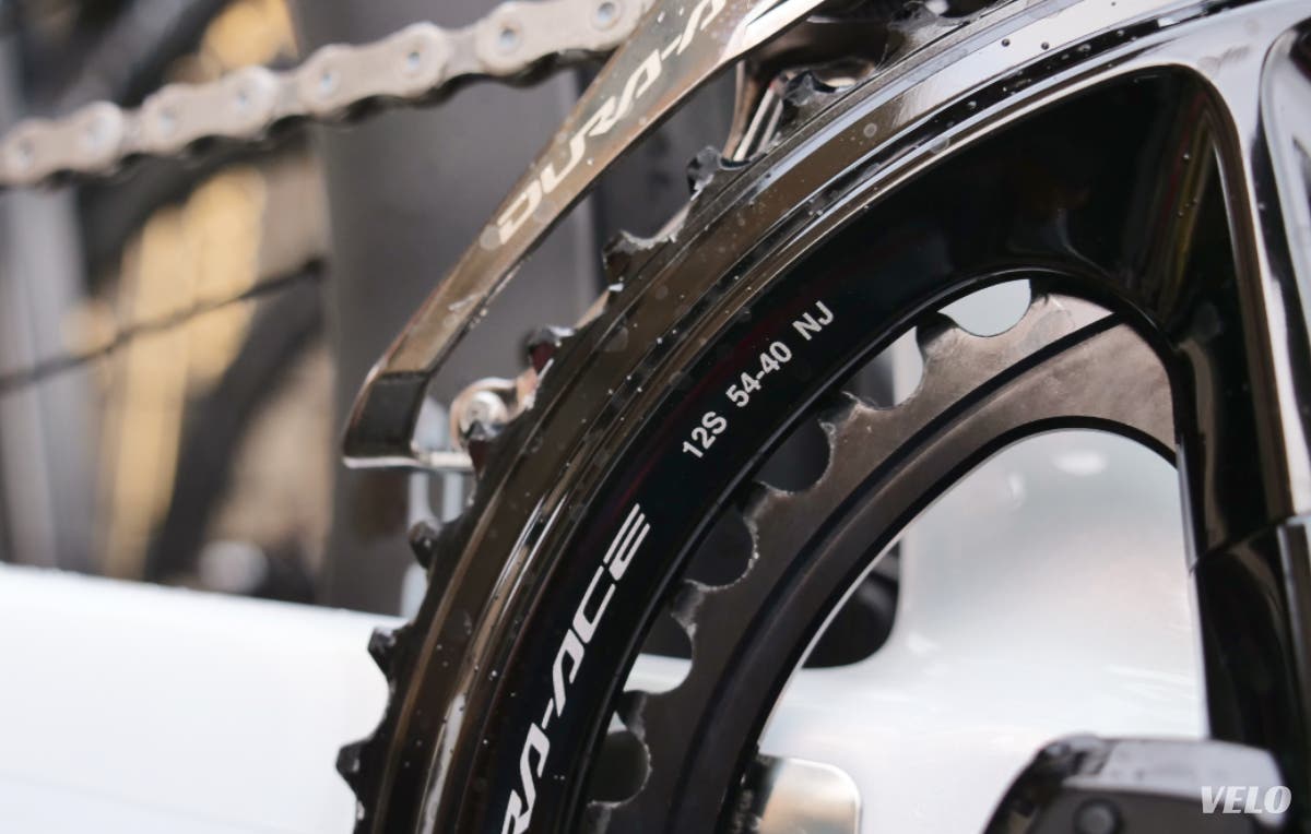 There are zero deviations in that department across any of the Shimano components, as the team is one of a few that the Japanese company officially sponsors. Chainring size was surprisingly small, or, dare I say, 54-40t, matched to 11-30T cassette.