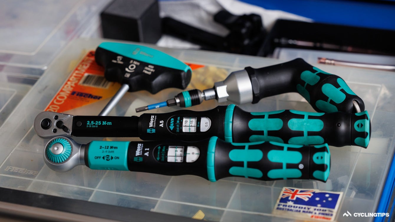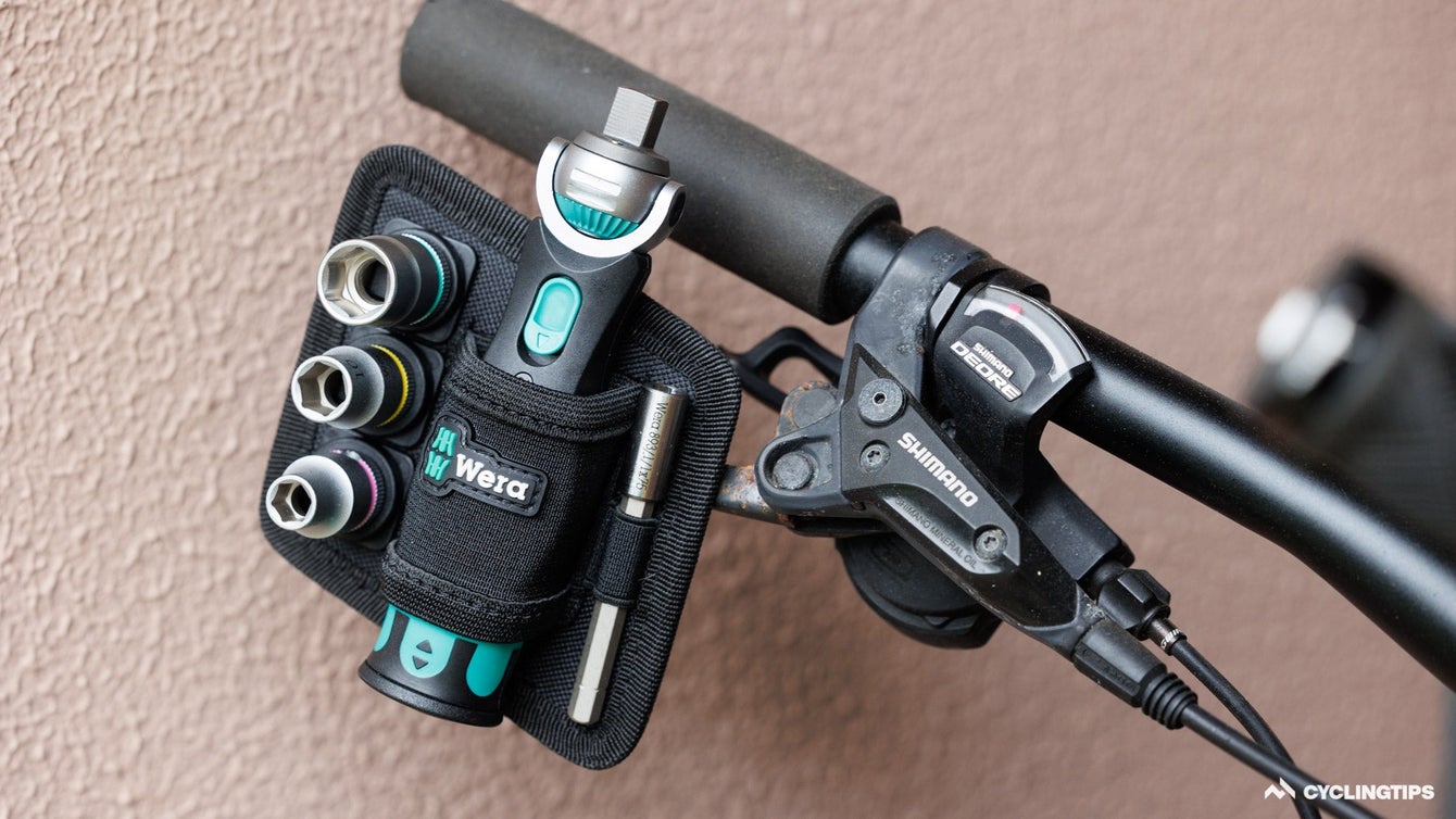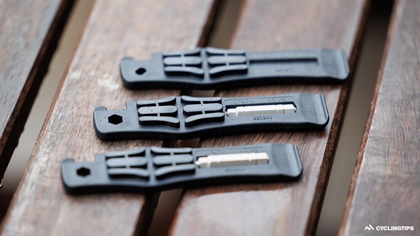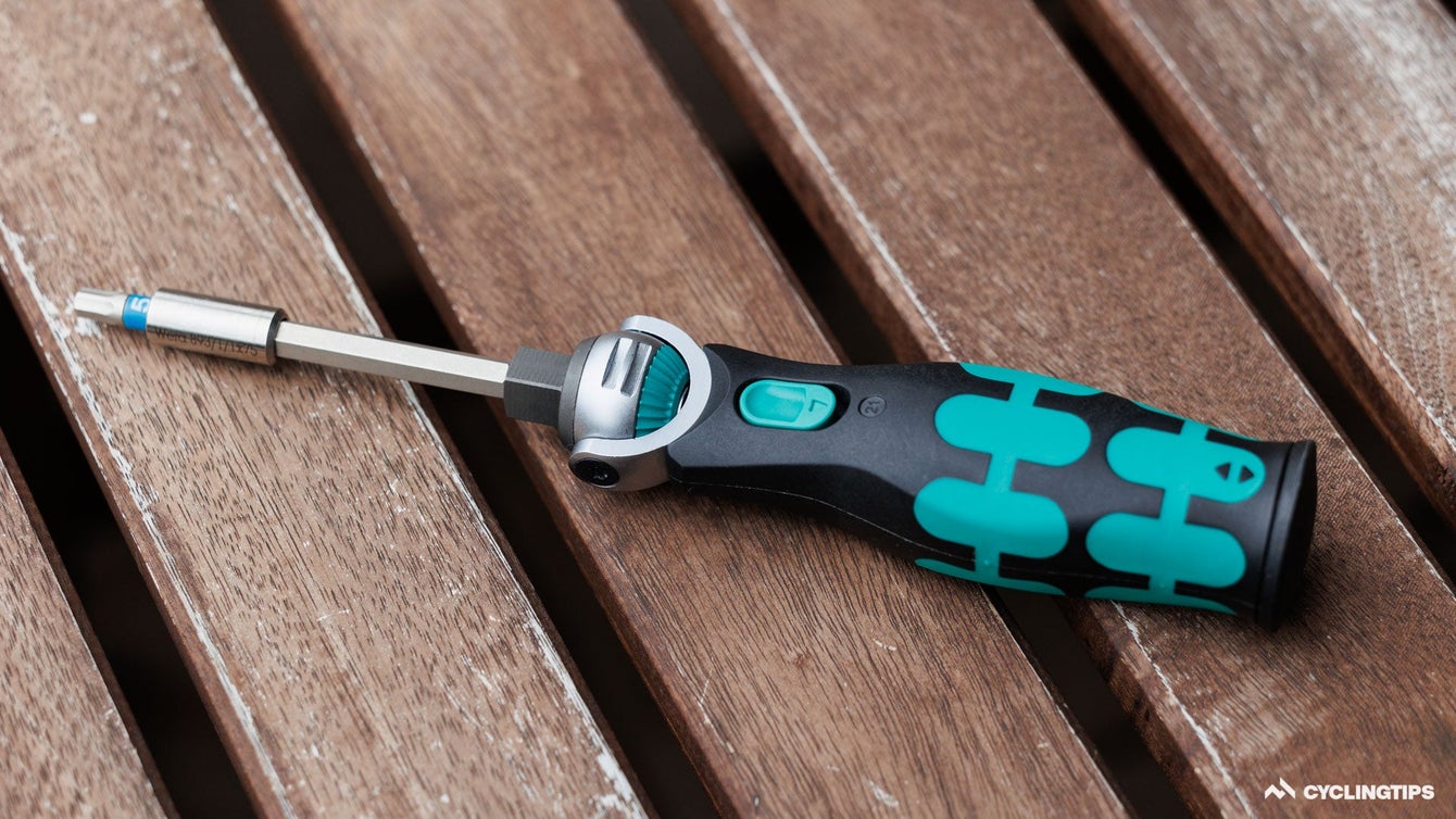 Introducing the new Wera Kraftform Kompakt 400. This is one cool tool. The ratchet offers an incredible low back drag with a fine 80-tooth mechanism (4.5°). The direct switch is sunk into the handle – great for not accidentally flicking it but a little tough to change it one-handed. Wera’s T-handle grips are full of traction and offer a comfortable shape in the palm. The bit-holder locks itself when a bit is inserted, and stays locked until the collar is slid to release it. That collar also doubles as a spinner for the tool, meaning you can hold it and spin the handle around it. Add in Wera’s high-quality bits and there’s plenty to drool over with this one. I do enjoy talking about a good torque wrench, and Wera’s new Safety Torque had me clicking with joy. This 2-12 Nm adjustable clicker-style torque wrench may be priced out of reach for many, but it has a number of rather cool and useful features. At the top of that list is the cam-over ratcheting head, meaning the tool will continuously click-over when the set torque is met, meaning there’s no risk of accidentally tightening the wrench further after it has clicked (video of how it works). I tested this feature and can confirm that the peak torque remains unchanged with every extra click you make. Better yet, the tool is well calibrated. The second-coolest feature is the lock-out sleeve. Simply slide this green sleeve upward (exposing the red warning label) and the torque component of the tool is locked out, meaning you can then safely use the tool as a regular ratchet for loosening and tightening needs. That should be especially useful for the travelling mechanic looking to keep their kit small. Just don’t forget to slide that collar back down when you need a torque wrench! The Safety Torque wrench is available in two variants: the A1 (shown) features a 1/4″ square drive head, while the A2 features a 1/4″ in-hex drive head – otherwise, they’re the same tool. Wera offers just the torque wrench by itself or various kits are available. Pictured is the “A 1 Set 1”, which isn’t all that applicable to cycling applications with the included 5.5 – 13 mm sockets and extension. Wera’s torque wrench range has grown steadily in recent years. Shown in the middle, the Wera A5 is a torque wrench I’ve reviewed previously. Pedro’s recently updated its popular star nut setting tool. This tool is used for installing star fangled nuts into the top of metal fork steerer tubes (it’s what the top cap bolt threads into). Shown on the right, the Star Nut Setter II (US$60) shares the same concept and dimensions as Pedro’s original tool (left). The new version features an aluminium guide sleeve for more-reduced weight, while the steel driver has been refined for improved ergonomics (and further weight-savings). The original Star Nut Setter was one of the most compact options but weighed a hefty 416 g. The new version is exactly half that. The tool’s sleeve keeps everything aligned and acts as a depth stop for the star nut. The guided design has been copied by a few other tool manufacturers since. I’m a fan of stashable multi-tools, at least where a bike allows such a thing to be used without compromise (basically just mountain bikes at this time). This is the new Stash RT Ratchet Socket Set (US$70) from Granite Design. It’s the first steerer-stashed bit-based ratchet tool, and is a sibling to the Stash RCX I’ve reviewed previously. The Stash RT is designed for use in tapered suspension fork steerer tubes that have an opening at the crown. Like many stashable tools, this one replaces the pre-existing starnut or compression plug by effectively clamping the top of the stem toward the bottom of the steerer. Shown here are the multiple pieces provided, including three different M6 bolt lengths to match your steerer tube. Pieced together, this is what the tool looks like once installed within your mountain bike’s steerer. All up it weighs 160 grams, including the tool. That tool combines a very well-proven ratchet mechanism (the same one most popular bit-based ratchets use) with quality bits spanning 2-8 mm, T25, and a longer PH1 that can be placed into the bottom of the tool for more leverage. And this is what it looks like once installed. It is possible to run it with fewer spacers than shown for a lower-profile fit. Thanks to the magic that is a coil spring, the tool pops up by itself. For an extra US$10 you can get the optional computer mount top cap kit. This quite simply replaces the stock swivel cover with either a Garmin quarter-turn or Wahoo-type computer mount. I personally loathe having a computer in this position, but each to their own. Overall there’s a lot to like about this one. It’s easy to install, well priced. easy to use, does not rattle, and is a highly functional tool. However, one big flaw is that the stashed tool can’t (at least not easily) be used to preload the headset it hides within. Add in that it has no tyre lever or chain-breaker and that is why I’ve since reverted back to using the OneUp EDC (threaded). I rarely use my air compressor or track pump(s) for inflating tyres; rather my go-to is the Fumpa. I’ve been a fan of this little handheld compressor since day-dot and have seen the product go through a series of design tweaks since. Pictured (from left to right) is the new NanoFumpa, Fumpa Gauge, and the updated Fumpa Bike Pump. The original Fumpa Bike Pump (AU$179) is the product I use daily. The new model is on the left, the previous version on the right. It’s still the same fast-inflating handheld electric pump with an accurate digital pressure gauge. However Fumpa has added USB-C charging, given the internals a small tweak or two, and replaced the swivel extension hose with an in-built adapter. The new push-on adapter is now configurable between Schrader and Presta valves.The market for electric tyre inflators has certainly blossomed over recent years. Now just about eve