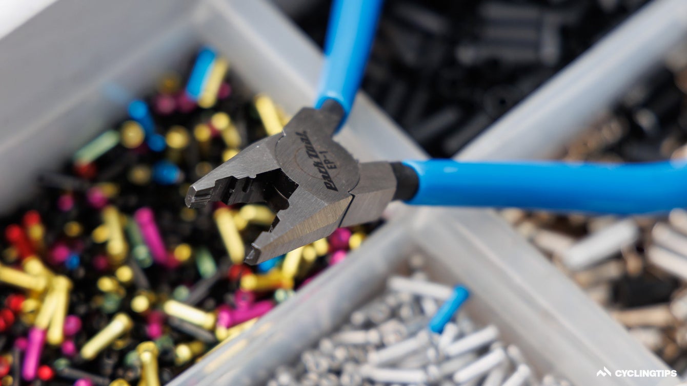 PNW – the company best known for its great-value dropper posts – has entered the multi-tool game. This is the Pebble, a rather minimalist and compact 51 g folding tool that combines a few of the commonly needed tool sizes with a single Dynaplug tubeless repair plug. That Dynaplug insert unscrews from the tool; beneath it hides a T25 bit. The tool also has 3-6 mm hex sizes covered. The tool even passes the often-failed test of whether the 5 mm fits into a recessed derailleur mounting bolt. Overall it’s a quality-feeling product, one that is available in multiple colours and for US$37. It’s no secret I’m a fan of Dynaplug tubeless repair products. Yes Dynaplug carries a high premium over other solutions, but in my experience nothing is faster to use or more reliable. Here the PNW Pebble is pictured with the Dynaplug Racer and Racer Pro. This is the new Park Tool EP-1 (US$30). It’s a plier that serves the single purpose of crimping cable end caps. Most bicycle cable cutters already feature such a crimp function, so why the dedicated tool?It’s because an increasing number of derailleurs now place the cable in a hard-to-reach spot. The integrated crimp function on cable cutters is frustrating to use in these positions, and even gaining access with a blunt side cutter (my old preference) can require removing the rear wheel. To answer this, Park Tool’s new Crimping Pliers offer two angles of approach. You can crimp from the side or straight on. The pliers produce a rather stealthy centrally placed crimp that holds tight. Similar tools do exist from electronics industries, but you’ll struggle to find one as practical as this for the task. I know I’ve already covered brake bleed kits to death. As far as high-end options go, the BKM-1 (mineral) and BKD-1 (DOT) from Park Tool are real good. Part of that is due to the number of adapters included that make them ultra-versatile. Other positive aspects are the long flexible hoses, quality syringes, and a neat syringe-holding tool. However, my favourite element is that Park Tool lets you buy individual replacement parts. I’m rehashing all of this because there’s now a small upgrade kit available for these kits. This upgrade kit is the Park Tool BK-UK. The gold bits are M4 x 0.7 mm fittings for SRAM DB8 mineral oil brakes (yes, SRAM is no longer all-in on DOT), along with Campagnolo and Trick Stuff. The silver piece is a hose compression sleeve for clamping the hose onto certain bleed nipples. The blue pieces are bleed blocks for certain Hayes brake models. And lastly, the hose features a game-changing insert for use with old-and-new Shimano bleed nipples. That new hose insert is something that was first introduced with Shimano’s new bleed syringe (TL-BR001), a product I have previously praised for how much cleaner and easier it makes bleeding Shimano brakes (caliper end). Following Shimano, Park Tool is the first company I’ve seen to offer this insert. The insert works as a guide and securing support on all Shimano bleed nipples, whether they’re on an entry-level MTB brake or the latest 12-speed road stuff. Park Tool’s insert (top) seems to sit more securely in the hose than Shimano’s version (bottom). The Shimano version is good, but once in a while I find myself having to wiggle it back to the edge of the hose. And as I mentioned in my previous review, the Shimano synringe feels pretty cheap for what it costs – something the Park Tool solves. These are just the adapters for the upgraded BKM-1 (mineral oil) kit. Such a universal kit is unlikely to be needed if you’re a home mechanic with one brand of brake, but such a kit is certainly of value in a busy professional workshop. The Park Tool bleed kits were released at the start of 2020 and quickly sold out. Those early kits suffered from leaky hose ends and easily wrecked fitting seals (shown on the right). Park Tool has since revised the hose ends to be vastly more durable and secure (left). It’s an update that took the product from my sh*t list to my hit list. Reach out to Park Tool if you’re one of the few with the original leaky kits. The BK-UK means there’s now another option for those keen on the insert that makes the Shimano TL-BR001 syringe so special. The Daysaver Original9 and Coworking5 are two separate tools that can be combined into one impressively capable and compact package. You get 14 tools for just 72 grams when paired together. I recently did a detailed review on this combo – I’m including it in this gallery in case you missed the review of this tool which will surely inspire many other new tools. German tool company Wera recently released a catalogue worth of new hand tools, many of which are applicable to bicycle wrenching needs. Pictured is the 8009 Zyklop Pocket Set 2, a compact tool that has a staggeringly large feature list, making it pretty handy for general fixing needs. Wera’s original Zyklop ratchet features a swivelling head that can be locked at various angles, allowing it to be used as a screwdriver, a regular 90° ratchet, or somewhere in between. The new 8009 adds a new universal head into the mix, one that can fit both 3/8″ square drive sockets and 1/4″ hex bit sockets. The dual-purpose drive head is a concept first seen in Bosch’s ‘Freak’ electric impact wrenches. But wait, there’s more. The base of the 8009 pulls out to reveal an organised collection of quality Wera bits. Add the extension and you have a rather handy ratcheting screwdriver. Pivot the head and you have yourself a ratchet. This tool is arguably a little too exposed and big for use as a carry-along multi-tool, but surely many will find it useful in pre-ride tunes, workshop wrenching, and general household DIY. Wera has been steadily growing its cycling footprint for a few years now, and the ‘Bicycle Set 15’ is one of the more focussed efforts to date. This 46-gram ride-friendly toolset aims to provide eight separate functions from somethi