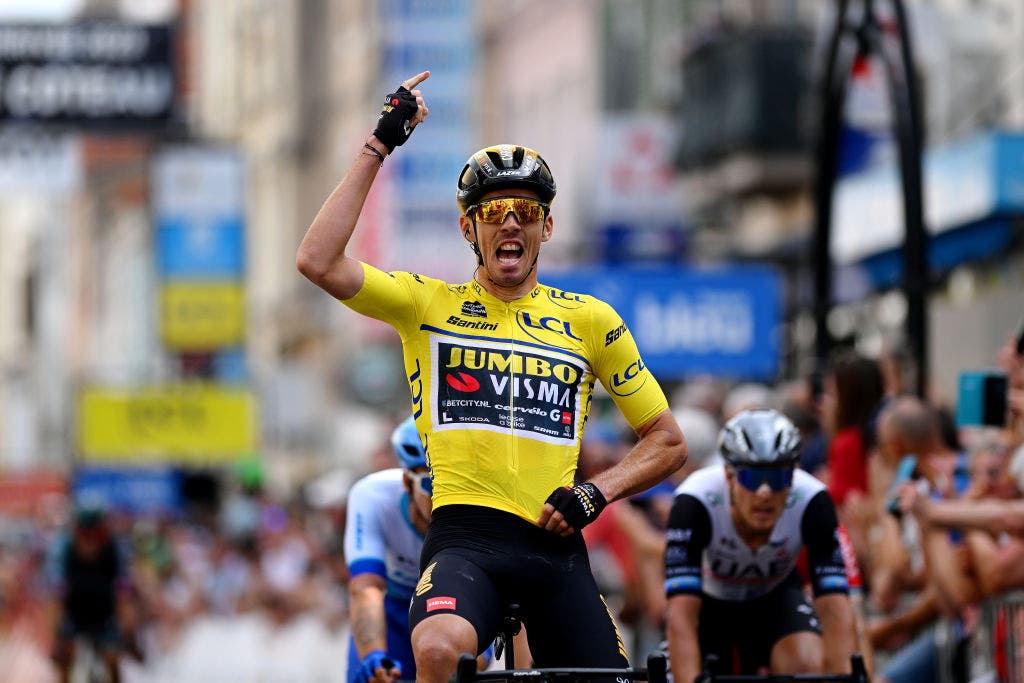 Overnight leader Christophe Laporte (Jumbo-Visma) couldn’t repeat as the winner or grab finish-line bonus sprints to finish fourth, but retained the leader’s jersey, now tied with his compatriot.