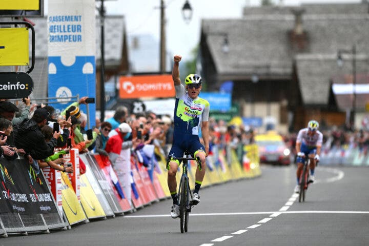 The 25-year-old German attacked out of the break in the final 2km of the mountainous final of Friday’s sixth stage, was caught 500m from the line by Mathieu Burgaudeau (Total Energies), then sprinted out of his rival’s wheel for a stage finish from a tragicomedy flick.