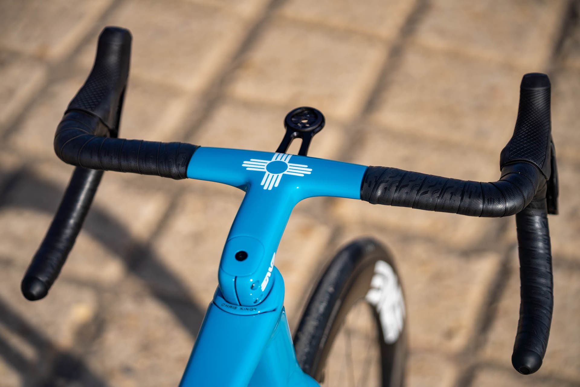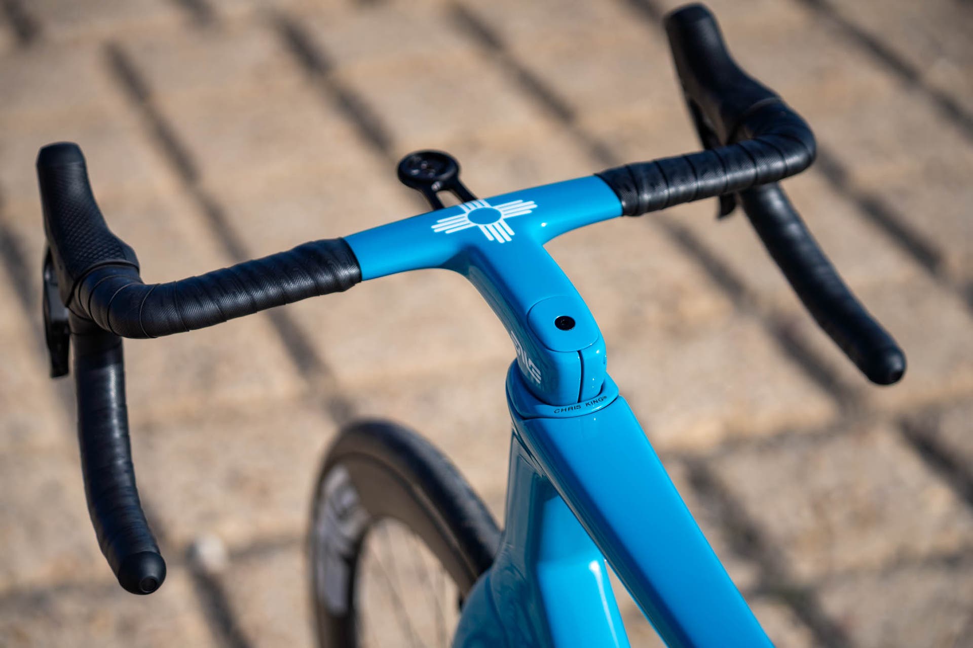 I indulged in the custom paint process by selecting from two of three dozen or so colors and picking from the four paint templates from Enve’s look book. VanderSteen then sent me multiple renderings, showing the paint, the wheels, and the parts selection. For the stem art, I asked for the Zia symbol from the flag of my home state of New Mexico.