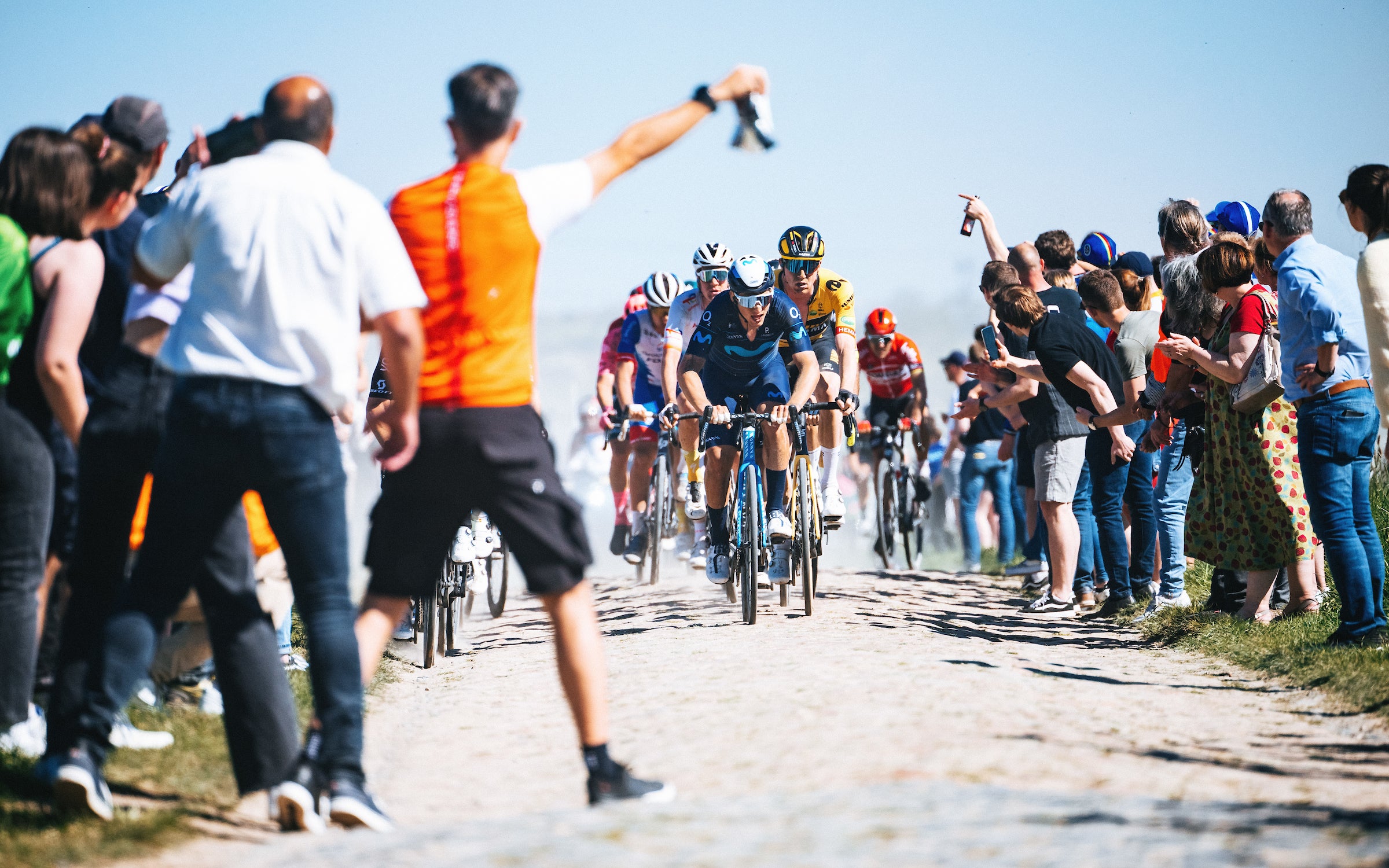 “For really intense races, or where it’s harder to get at stuff that’s in pockets like Roubaix, or if it’s really cold, we give them higher concentration drinks,” Girling said. “It means they can focus on the bottle and not worry about reaching for the solid food.”