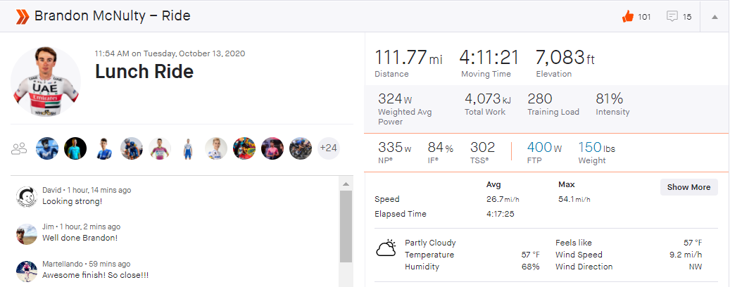 Strava: https://www.strava.com/activities/4189658417