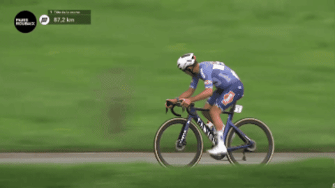 92.8km: As Van der Poel exits the forest with a slight gap, a now-isolated Pedersen has to accelerate to close down the gap as Philipsen sits on his wheel as Alpecin’s endgame utilizing their ‘squeeze’ technique comes into focus.