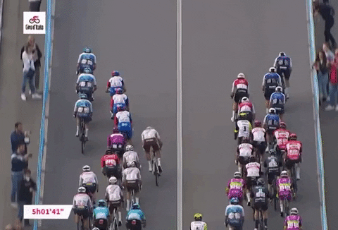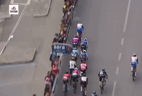 Near the end of what had been, up to that point, a remarkably slow and quiet Giro d’Italia stage 6, the pace picked up in the peloton as a sprint finish loomed. At the front of the race, a chaotic battle for positioning ensued, and then the big names hit the front in a desperate race for the line.
