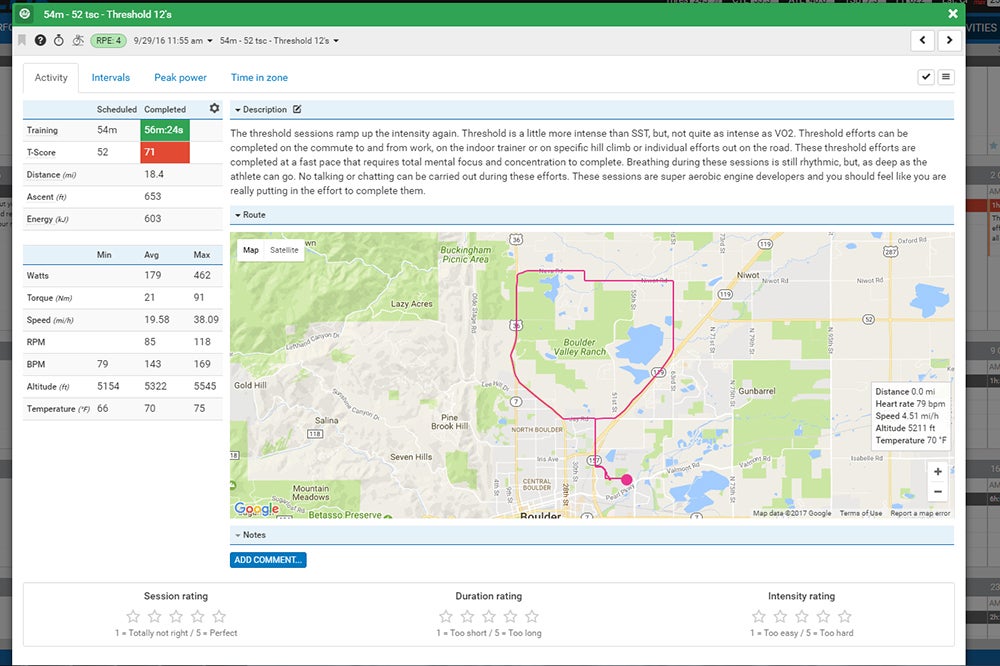 This was especially helpful with complex workouts that had multiple intervals and changing power goals throughout. It also made for a sleek way to remember the details. We’ve spent too many years scribbling power numbers and times on a piece of tape attached to the top tube.