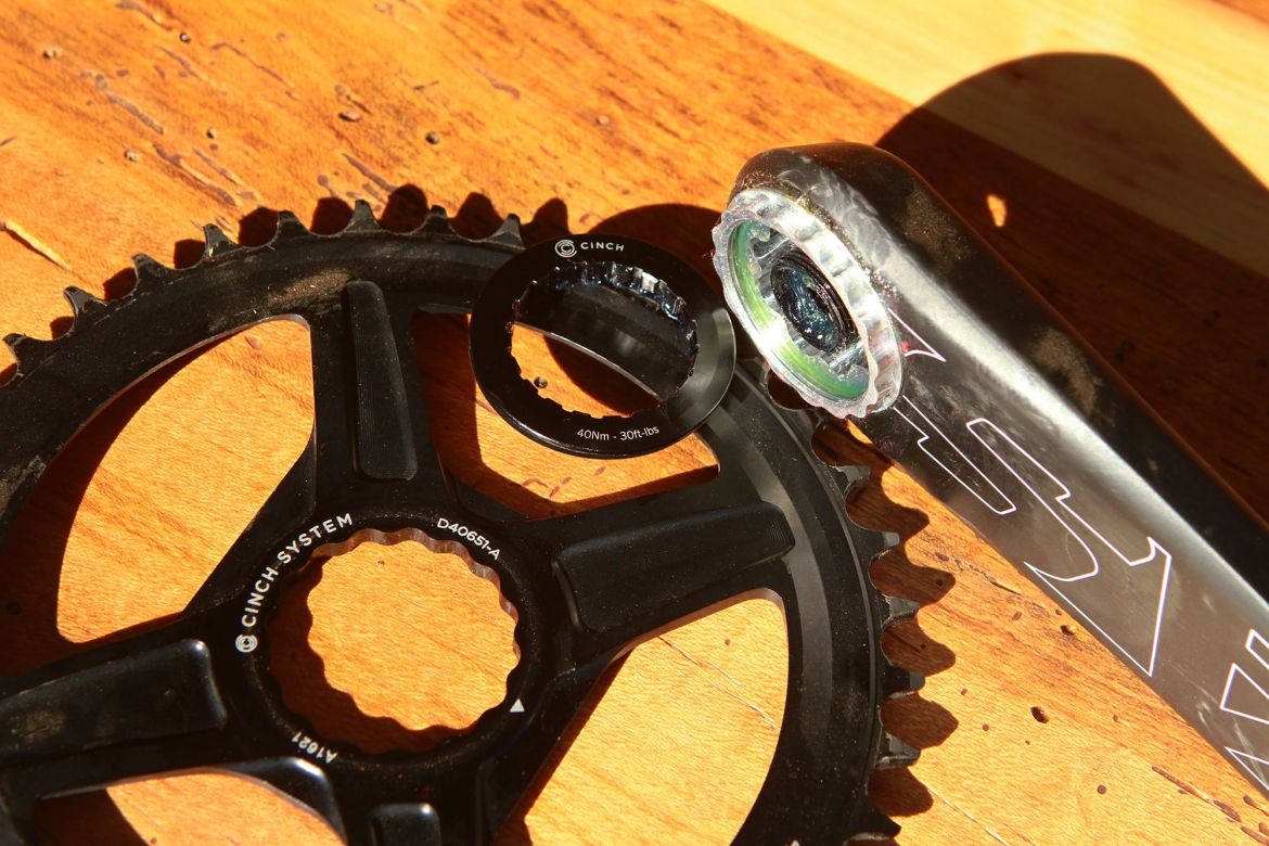 Easton’s Cinch system allows you to quickly swap out chainrings by loosening the crank bolt and a lock ring. It’s quick and easy, and it means you can switch between a 1-by set up and a 2-by set up, or just change your chainring size depending on the ride you’ll be doing. It takes about five minutes total to swap a ring using the Cinch system, and you’ll need an 8-millimeter Allen wrench to remove your crank, as well as a Shimano-style bottom bracket remover tool (Like Park Tool’s BBT-22) to remove the Cinch lockring.