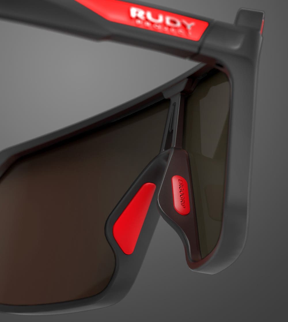 The integrated nosepiece looks to be a departure from Rudy Project’s previous designs which had this contact point as a standalone adjustable/removable part, that could be flexed and positioned to accommodate an individual’s face. We’re interested to see how removing this customizable fit-point will allow for the sunglasses to sit comfortably on the wearer’s face.