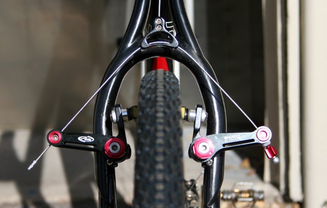 Now that you’ve read Sheldon’s piece, you know that the low-profile brake can be set up to have a higher leverage ratio than a wide-profile brake, and hence more power, and why. You also know that you get a higher leverage ratio by using a lower straddle cable, but if you have it too low, it can clog with mud easily, and it is hard to release the brake since there’s not enough slack in the system to pull the straddle cable out of the end of the brake arm (unless you have Campagnolo or Cane Creek levers with the release button on the lever).
