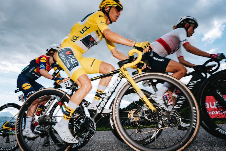 One kilometer before the Col de Joux Plane summit, Vollering put in an attack of her own, but she too could not get a gap. Vollering attacked into the descent, stringing out the GC group, and it wasn’t long before Gigante was gapped. The Australian would go on to lose nearly four minutes by the end of the stage, but her climbing performances have offered a glimpse of her incredible potential.