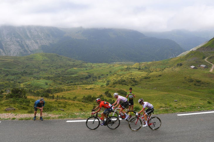 “Andy said, ‘You look good. Try to go away. Maybe you can help me on Luz Ardiden,’” says Lauritizen. “Go away” Lauritzen did, just before the summit. He then plummeted out of sight into fog in the valley below where Van Vliet joined and passed Claveyrolat to begin the 16km climb to Luz Ardiden alone, hoping that his 1:30 lead on the GC men was enough to win.