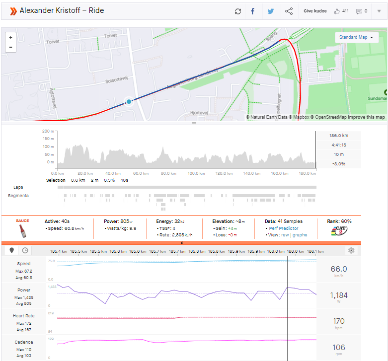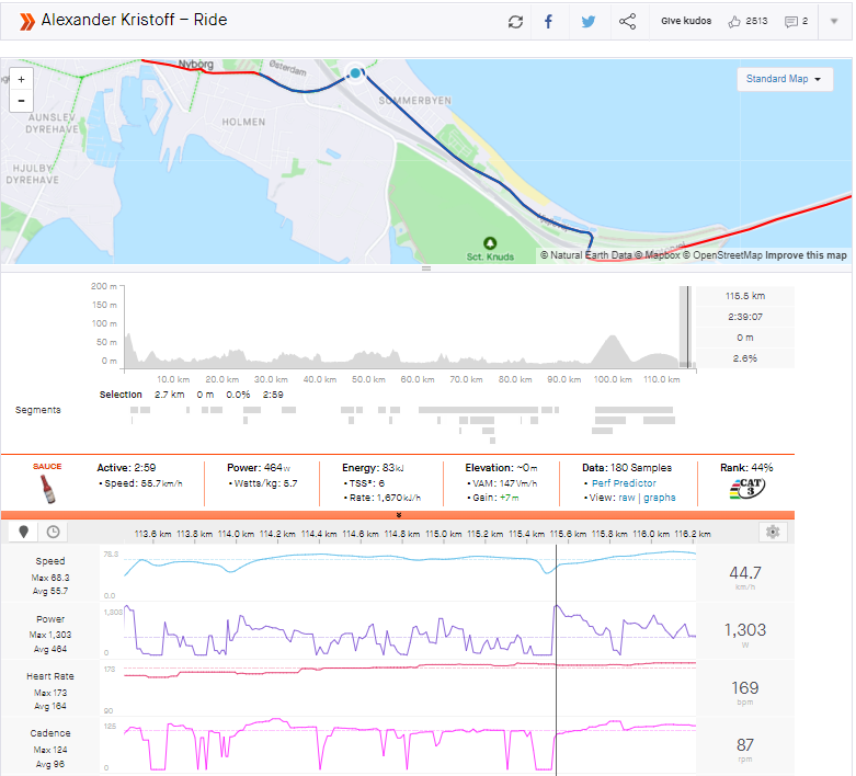 Kristoff crossed the line in 11th, and though we don’t have the power numbers from the top-5 sprinters, we can confidently say that they’re doing upwards of 1,200-1,500w for 10-15 seconds and hitting speeds of over 70kph.