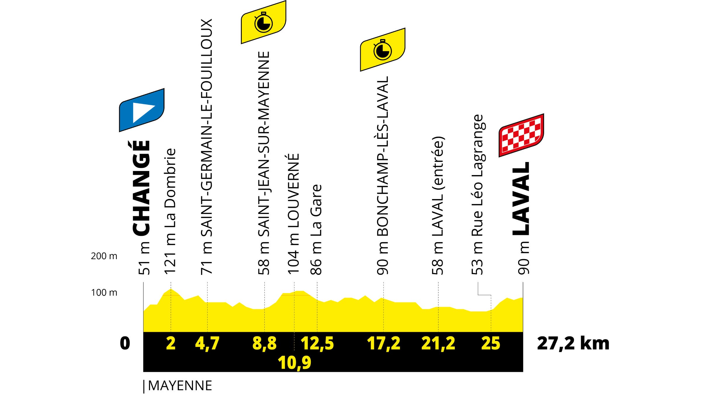 The stage 5 time trial is a 27.2km test that is anything but pan flat with 304m of elevation gain.