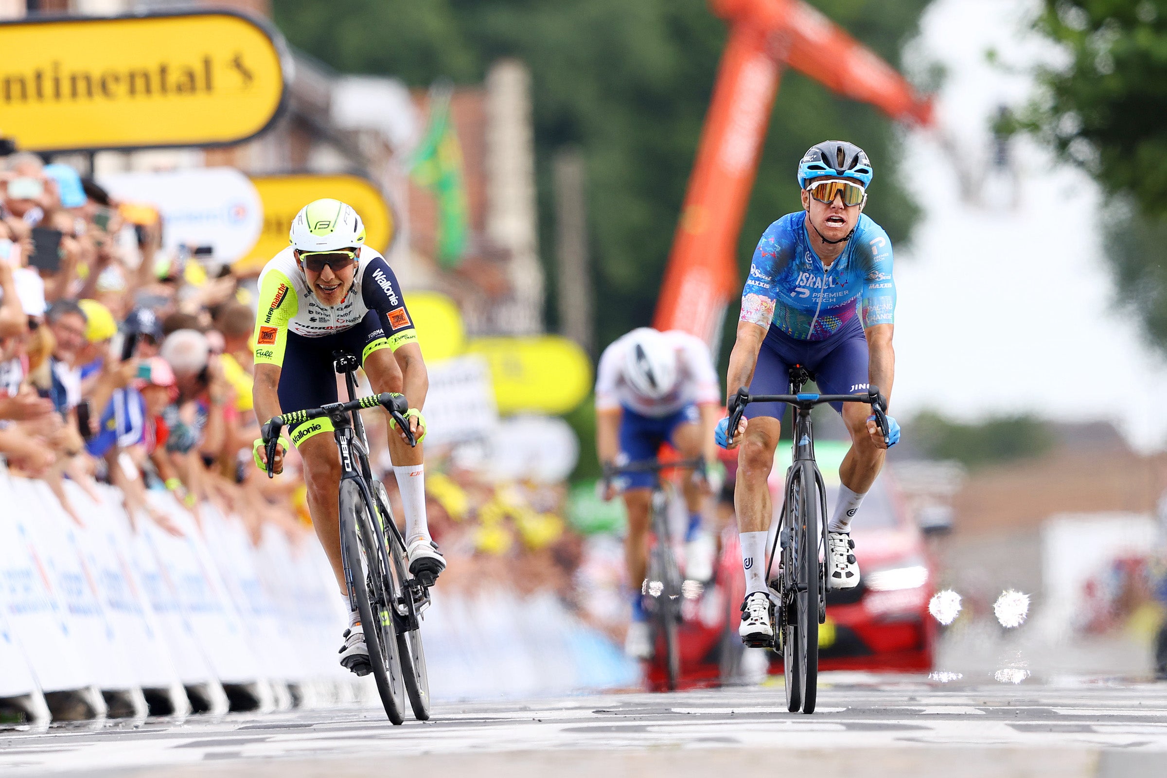 Back in the peloton, Fabio Jakobsen (QuickStep-AlphaVinyl) led race leader Wout van Aert, his Jumbo-Visma teammate Christophe Laporte and Peter Sagan (TotalEnergies) across the line.
