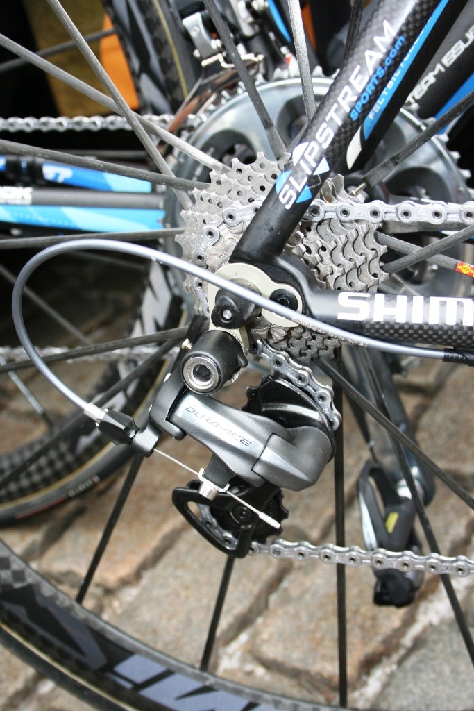 Farrar’s bike didn’t go down in a severe crash, but team mechanics are famously thorough when it comes to keeping the bikes as perfect as possible for as long as possible. Regarding the shifter, “It hit the ground and it was a little bit dinged up. And you know, it’s Tyler Farrar, so his bike needs to be tip-top all the time,” said Withington.