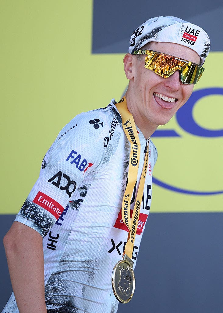 HAUTACAM, FRANCE - JULY 17: Tadej Pogacar of Slovenia and UAE Team Emirates - XRG celebrates at podium as Yellow Leader Jersey winner during the 112th Tour de France 2025, Stage 12 a 180.6km stage from Auch to Hautacam 1519m / #UCIWT / on July 17, 2025 in Hautacam, France. (Photo by Tim de Waele/Getty Images) (Photo: Tim de Waele/Getty Images)