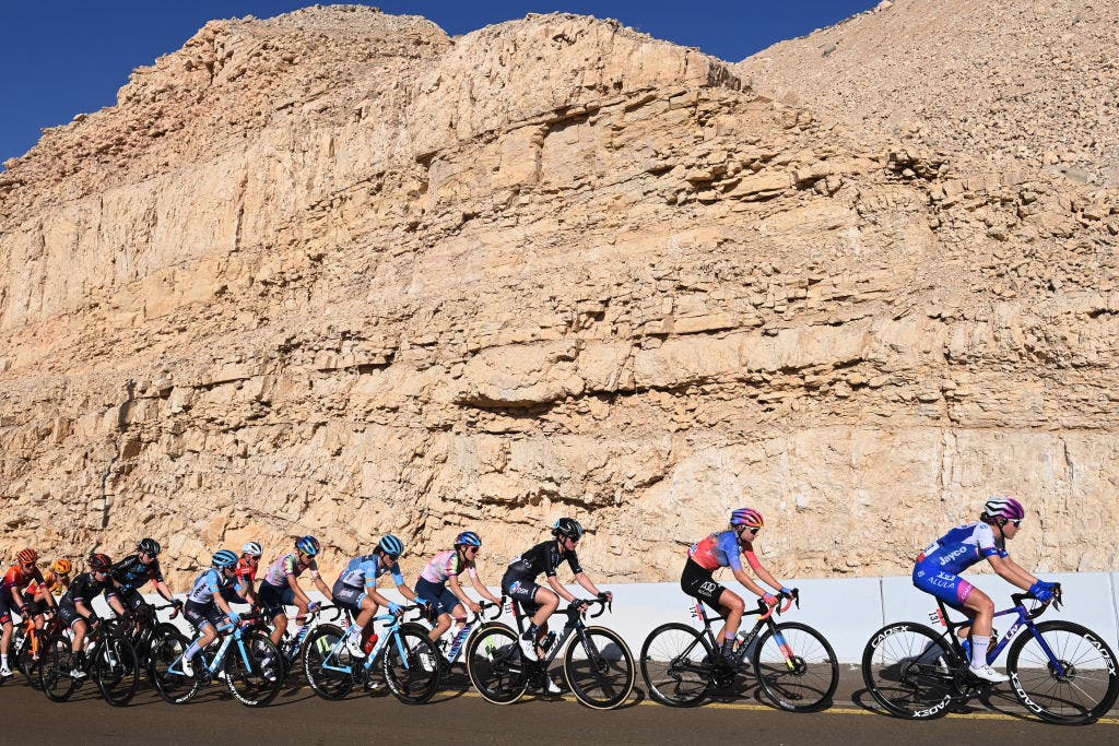 On the approach back towards Al Ain the peloton split yet again with a large group of riders losing contact with the front but they regained contact shortly after. Meanwhile the Lippert group were struggling to close the gap which had increased to 40 seconds while Cavalli’s race was all but over at 2’05”.
