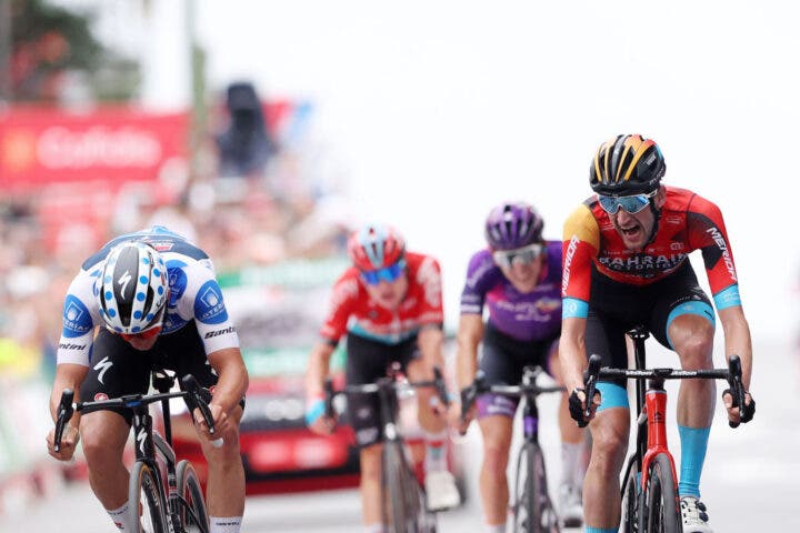 Wout Poels (Bahrain Victorious) denied Remco Evenepoel (Soudal Quick-Step) his fourth stage win of the Vuelta a España with a diesel-engine sprint out of a five-rider attack.
