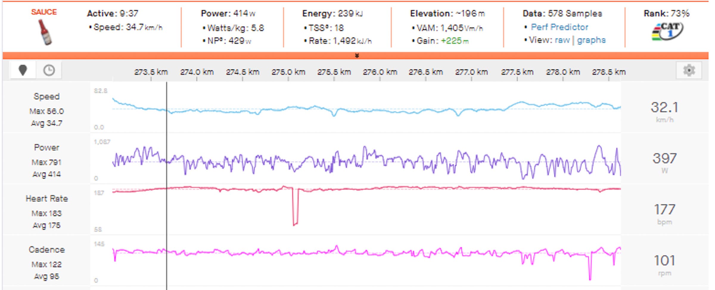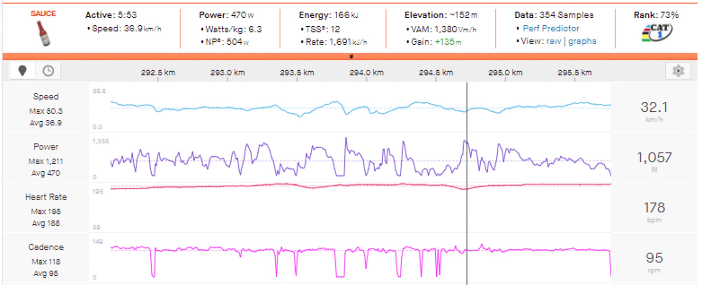 Normalized Power: 429w (6.1w/kg)