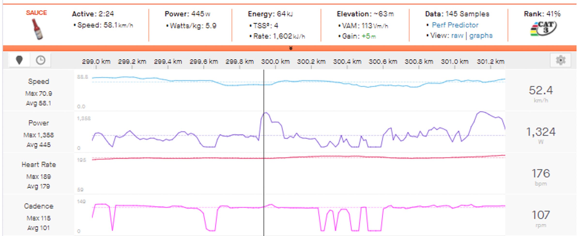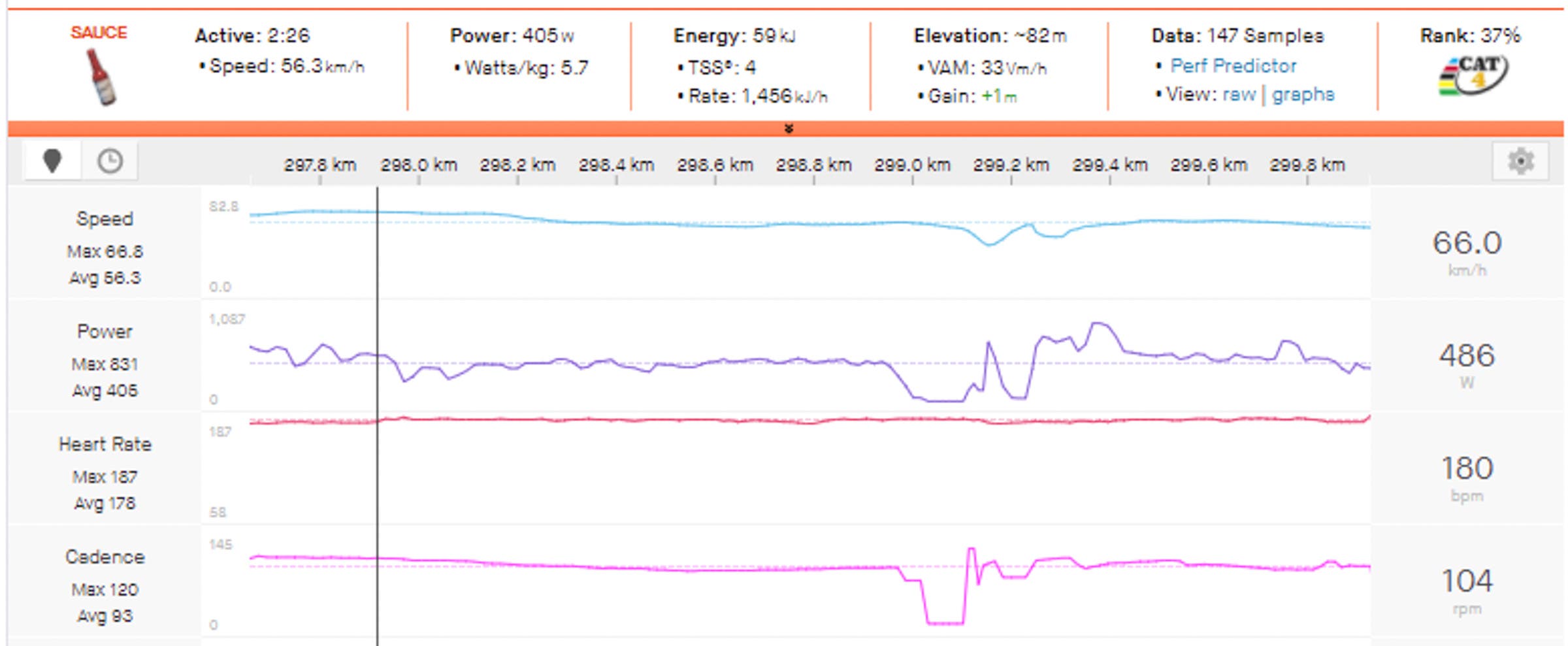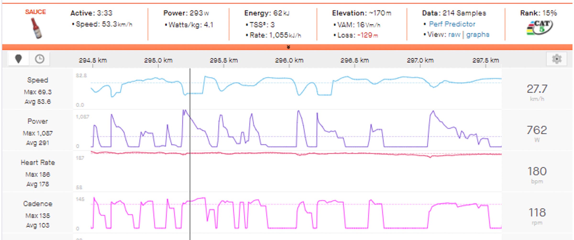 Peak 5min Power: 387w (5.5w/kg)