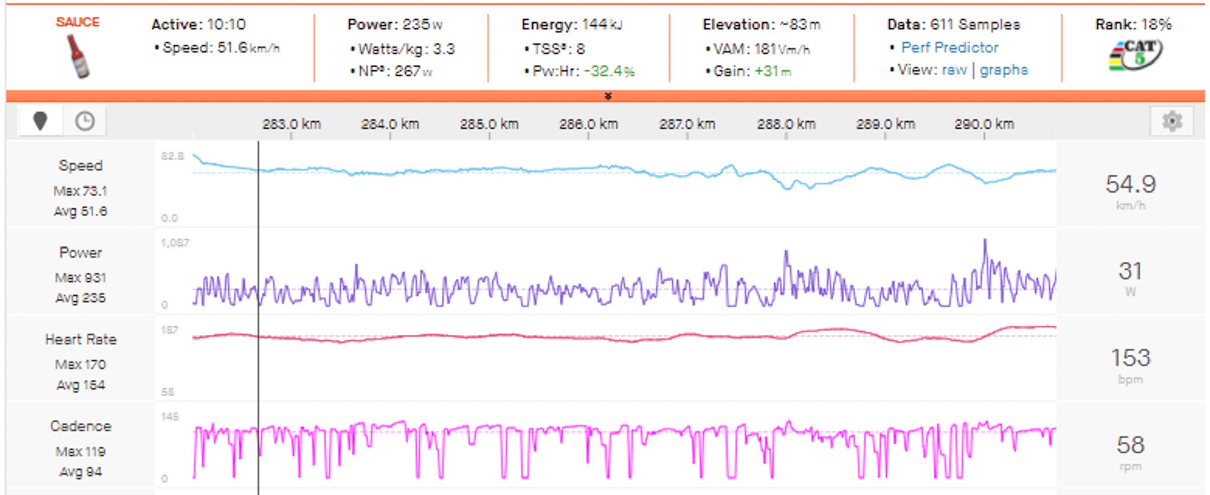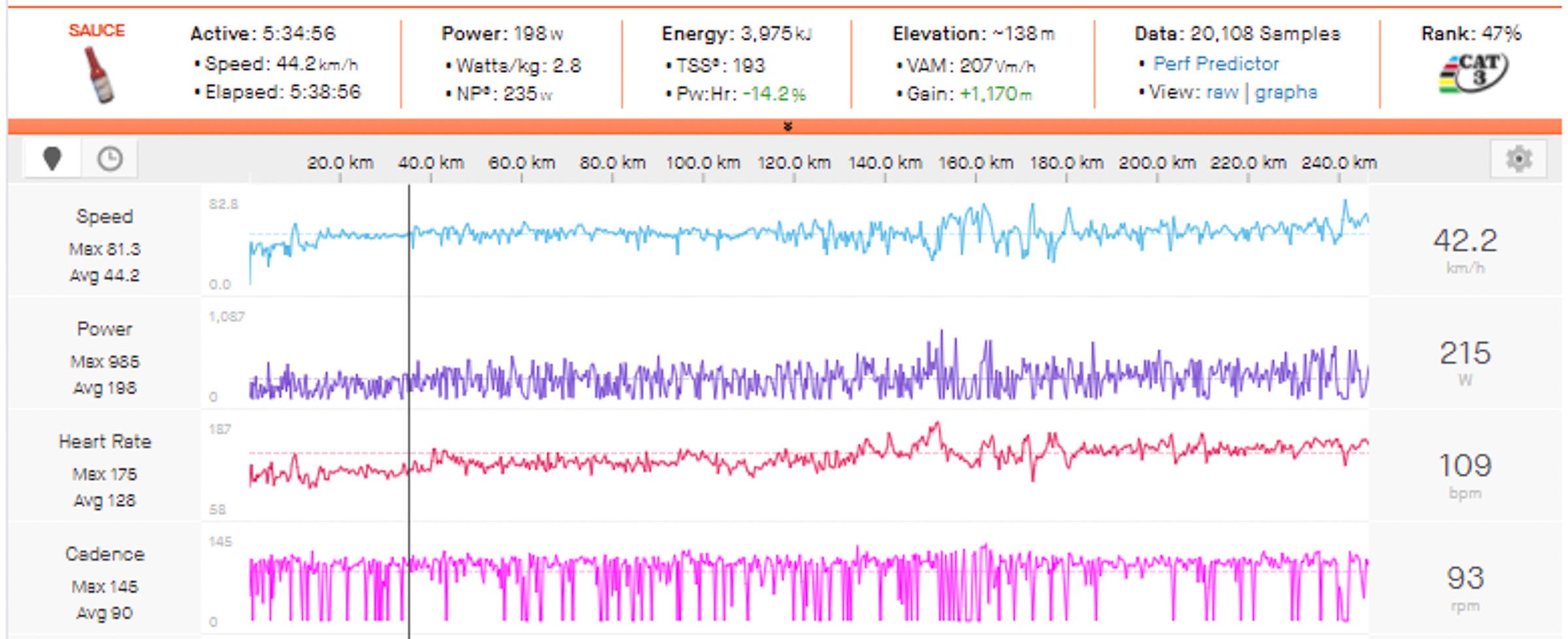 Normalized Power: 235w (3.3w/kg)