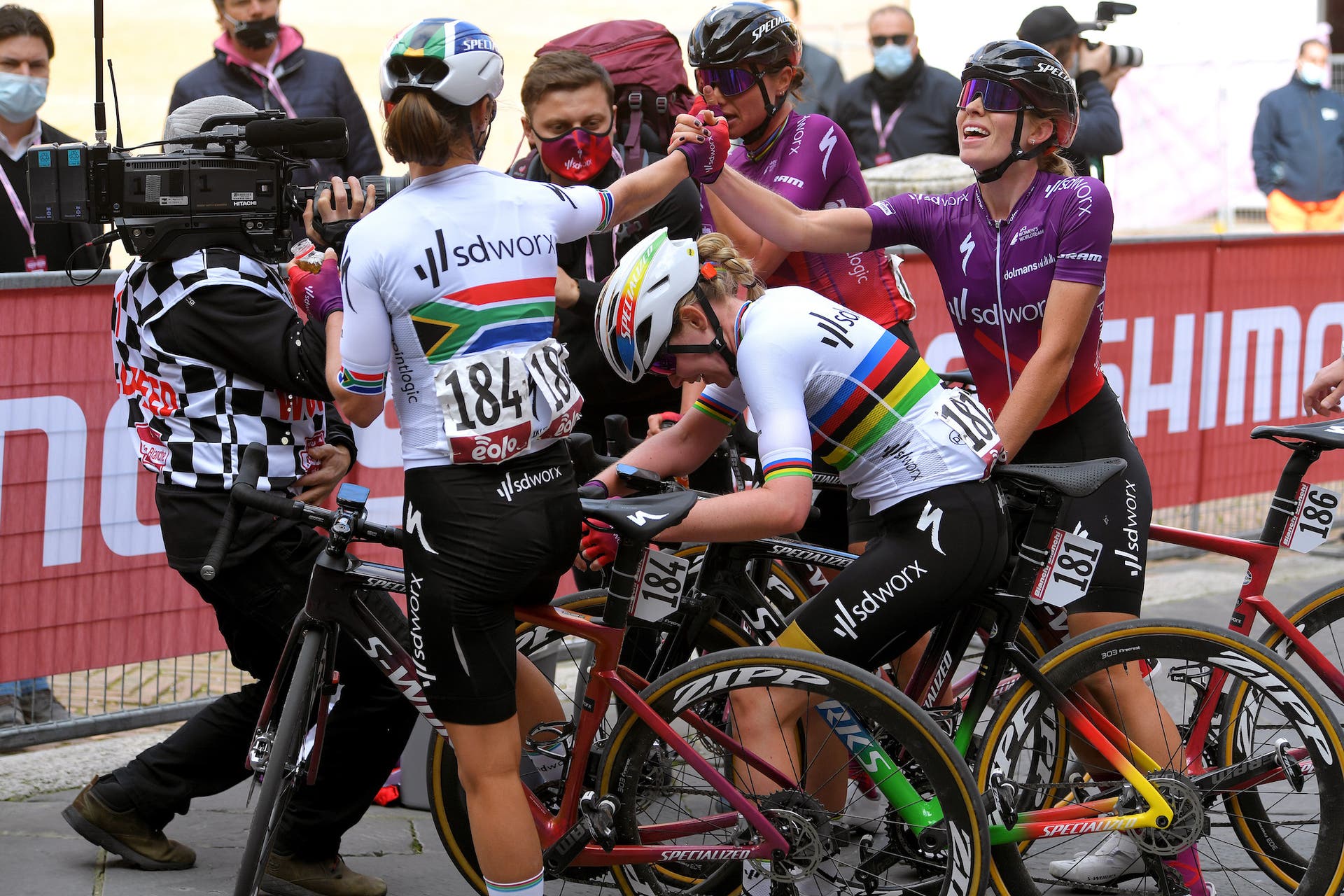 The Dutchwoman delivered the win after SD Worx had dominated a final hour of racing that was played out by a stellar front group packed with riders from the team. Anna van der Breggen made it a one-three for SD Worx with a late move from the chase bunch to take third behind Longo Borghini.