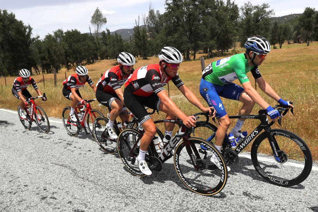 Van Garderen’s crash at 8.4km to go came at an unfortunate moment, because the peloton was just about to rumble off of the wide, straight highway 1 and onto the twisting and narrow roads around Morro Bay. Prior to the stage, Deceuninck-Quick Step had targeted these roads as a place to ramp up the pace in hopes of catching out some GC favorites.